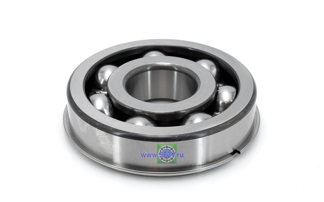 Радиальный шарикоподшипник с проточкой и стопорным кольцом на внешнем кольце. Стопорное кольцо служит для осевой фиксации подшипника, значительно упрощает монтаж, демонтаж, механическую обработку отверстий в корпусе и вала.