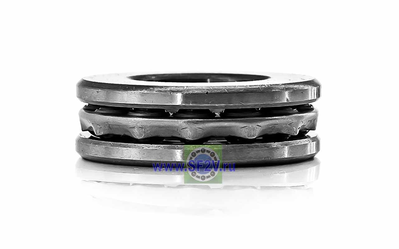 Упорный шарикоподшипник одинарный разборный. Воспринимают только осевые нагрузки и жестко фиксируют положение вала. Применимы для опор тихоходных валов, задвижек, крюков мостовых кранов, поворотных и нажимных устройств и т.д.