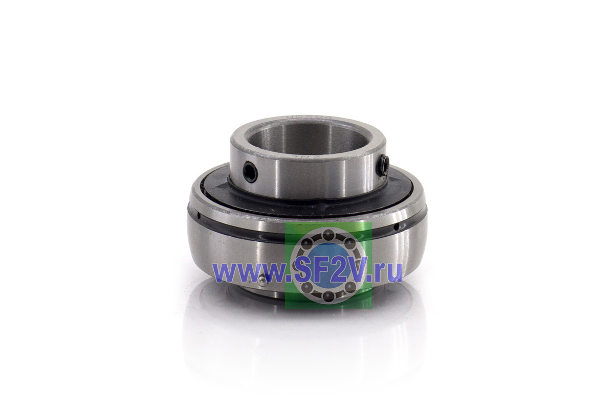 Шариковый подшипник, корпусной, закрытый с 2-х сторон. Крепление на вал с помощью затяжных болтов на внутреннем кольце. Подшипник типа UC – это корпусный подшипник, который используется для установки в корпусные подшипниковые узлы всех типов. Подшипник имеет сферическую наружную обойму, а корпус - сферическое посадочное отверстие. Такая конструкция позволяет подшипнику слегка перемещаться в корпусе, за счет чего компенсируется перекос вала или неточность монтажа. Крепление подшипника на валу осуществляется при помощи стопорных винтов. Кроме того, у такого подшипника есть специальные отверстия для замены смазки. Подшипники типа UC применяются в основном в качестве опор коротких валов, а также для тех мест установки, где возможно лишь небольшое тепловое линейное расширение. Осевые зазоры подшипника компенсируют небольшие удлинения вала. Подшипники типа UC применяются при нормальных нагрузках, низких или средних скоростях вращения.