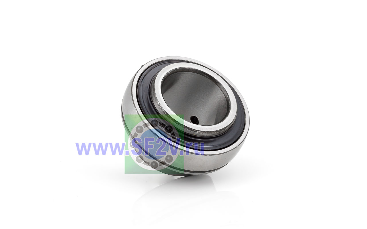 Шариковый подшипник, корпусной, закрытый с 2-х сторон. Крепление на вал с помощью затяжных болтов на внутреннем кольце. Подшипник типа UC – это корпусный подшипник, который используется для установки в корпусные подшипниковые узлы всех типов. Подшипник имеет сферическую наружную обойму, а корпус - сферическое посадочное отверстие. Такая конструкция позволяет подшипнику слегка перемещаться в корпусе, за счет чего компенсируется перекос вала или неточность монтажа. Крепление подшипника на валу осуществляется при помощи стопорных винтов. Кроме того, у такого подшипника есть специальные отверстия для замены смазки. Подшипники типа UC применяются в основном в качестве опор коротких валов, а также для тех мест установки, где возможно лишь небольшое тепловое линейное расширение. Осевые зазоры подшипника компенсируют небольшие удлинения вала. Подшипники типа UC применяются при нормальных нагрузках, низких или средних скоростях вращения.