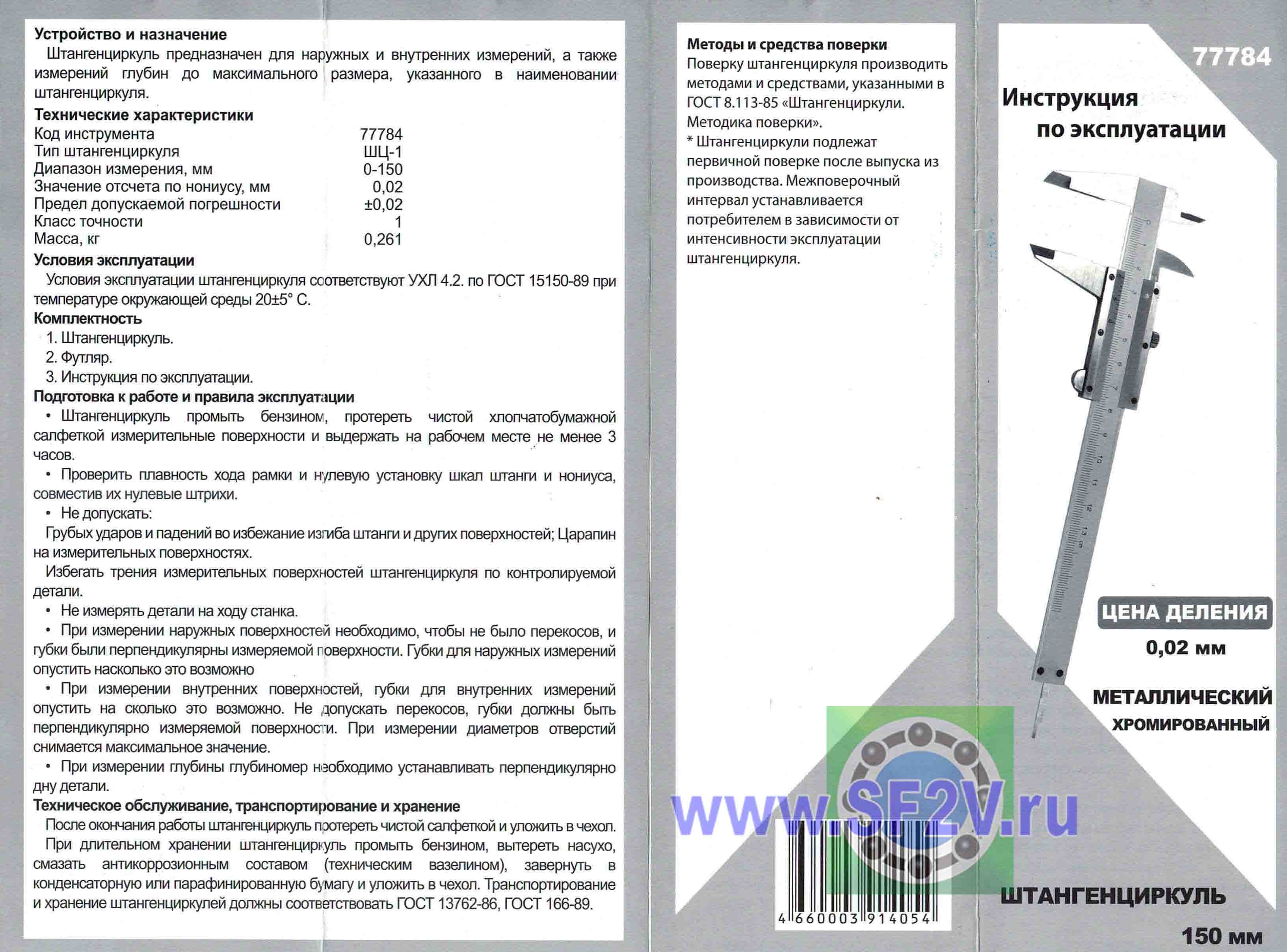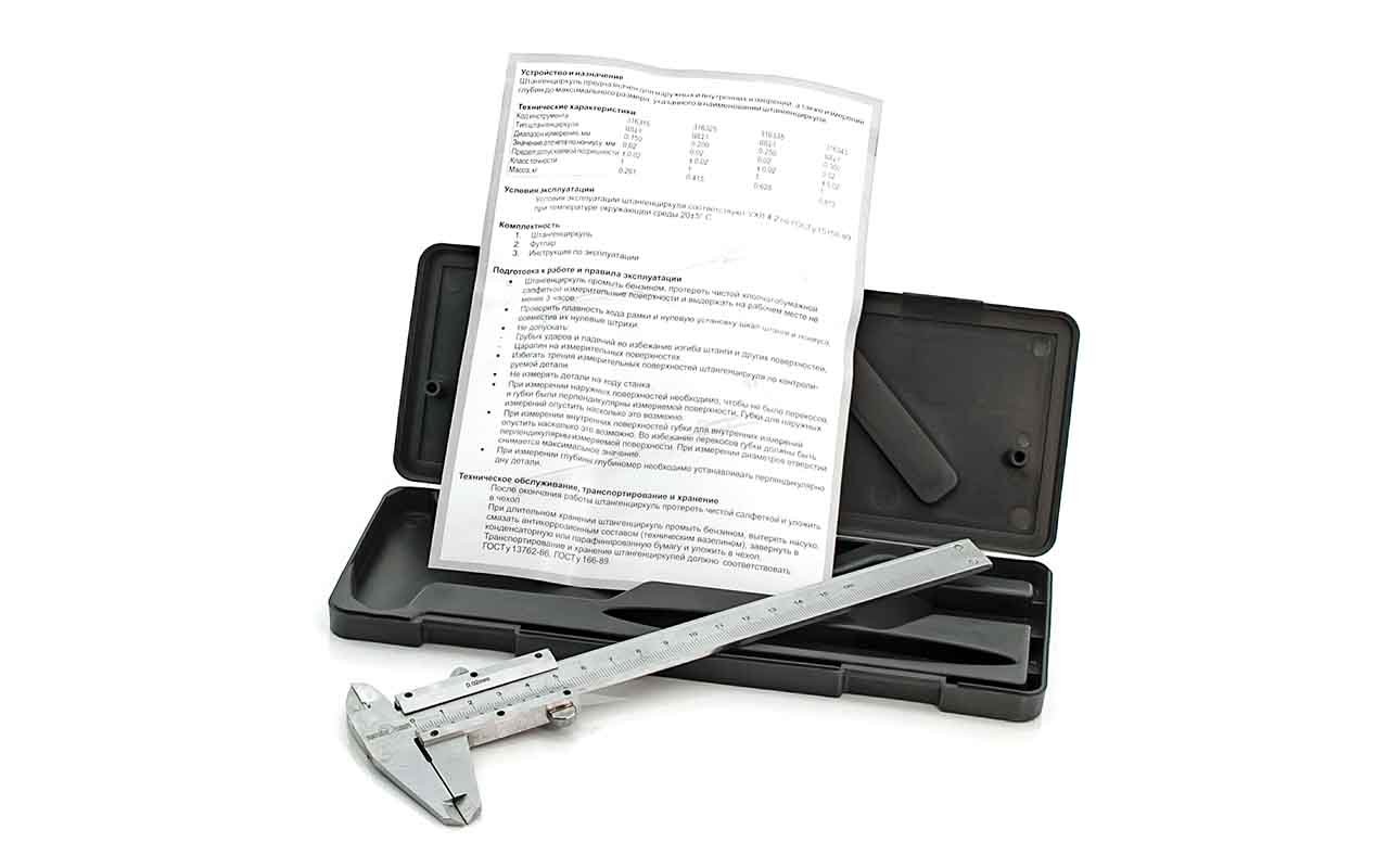 РАЗМЕРЫ И ХАРАКТЕРИСТИКИ Штангенциркуль 150мм 0,02мм Сервис Ключ