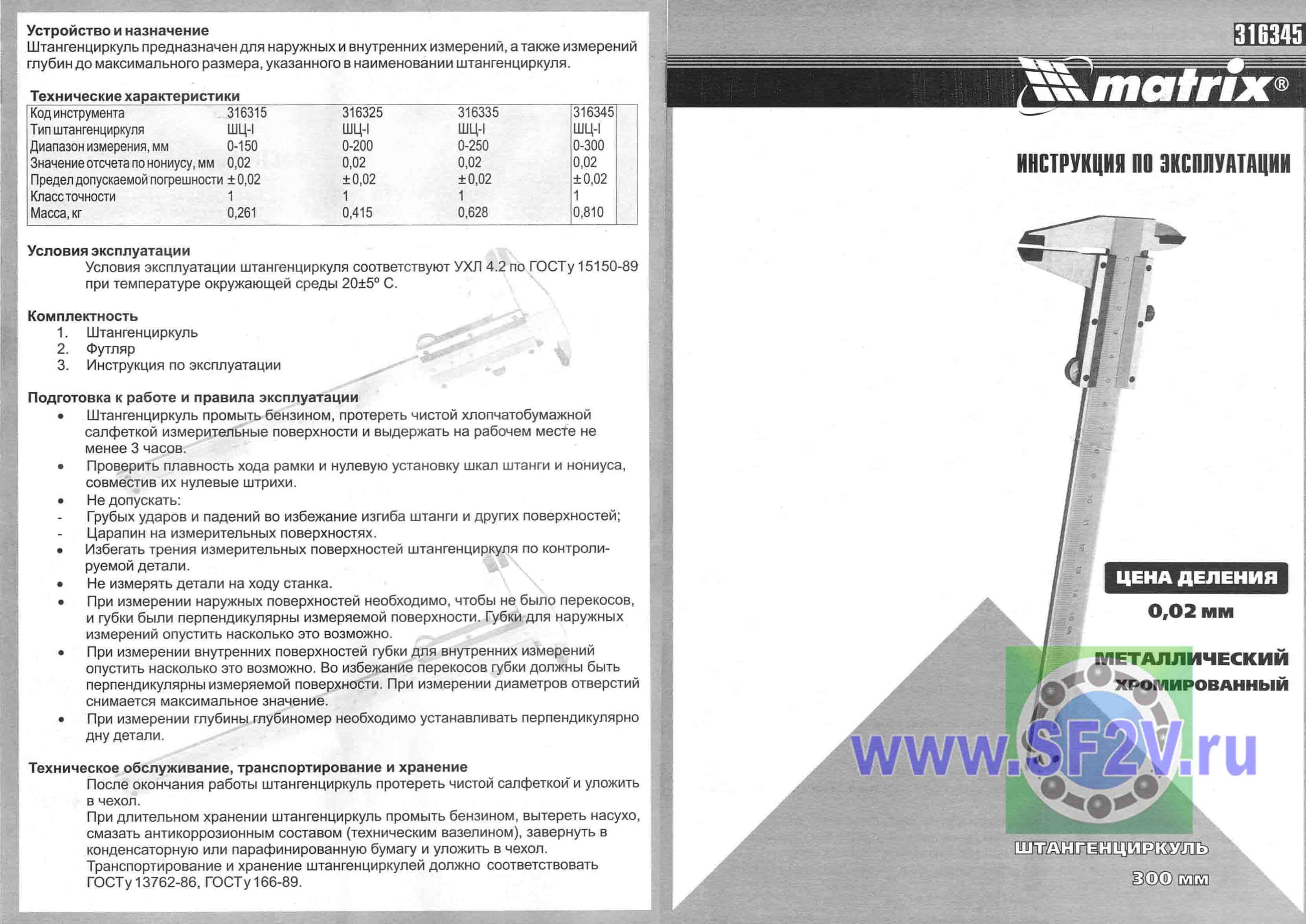 РАЗМЕРЫ И ХАРАКТЕРИСТИКИ Штангенциркуль 300мм 0,02мм MATRIX