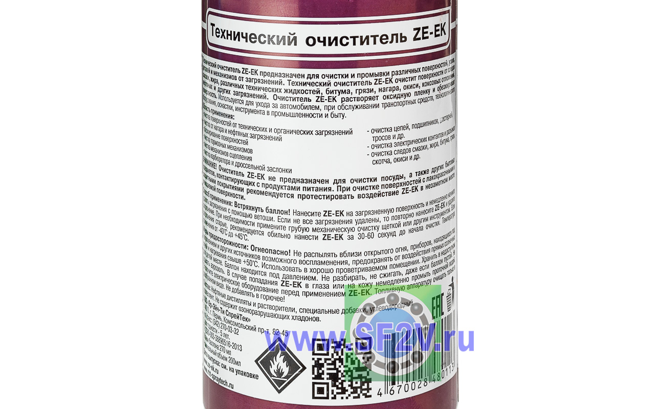РАЗМЕРЫ И ХАРАКТЕРИСТИКИ Технический очиститель ZE-EK аэрозольный баллон(270мл) RHT