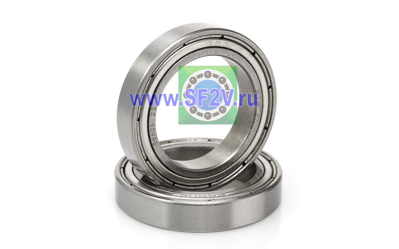 Подшипник из нержавеющей стали (SS – Stainless Steel) однорядный радиальный с металлическими крышками (ZZ), идеально подходящие для электродвигателей, вентиляторов, насосов и бытовой техники. Их ключевой особенностью является нержавеющая сталь, которая обеспечивает высокую коррозионную стойкость к влаге, химикатам и солям. Они могут работать в агрессивных средах и при высоких температурах, имеют низкий магнетизм (особенно из AISI 316 или 440C), обеспечивая долговечность и снижение эксплуатационных затрат по сравнению с обычными подшипниками. Защитные металлические шайбы ZZ — две бесконтактные стальные пластины с двух сторон, создающие лабиринтный барьер без трения о рабочие поверхности, что обеспечивает минимальный нагрев, отличное рассеивание тепла и сохранение смазки на длительный срок. Стандартный радиальный зазор CN(в маркировке не указывается) обеспечивает стабильную работу в обычных температурных режимах без теплового расширения, предотвращая преждевременный износ; преимущества ZZ включают низкий момент трения (по сравнению с контактными 2RS), по своей быстроходности закрытые радиальные шарикоподшипники не уступают открытым, следовательно долговечность при высоких оборотах и простоту монтажа, они лучше всего проявляют себя в средне загрязнённых условиях с умеренной влажностью, где не требуется полная герметизация от пыли или воды — в противном случае рекомендуются уплотнения 2RS. Смазка в закрытых подшипниках не теряет своего объема при эксплуатации, поэтому подшипники закрытого типа в меньшей степени подвержены механическому износу, удлинен срок службы шарикового механизма.