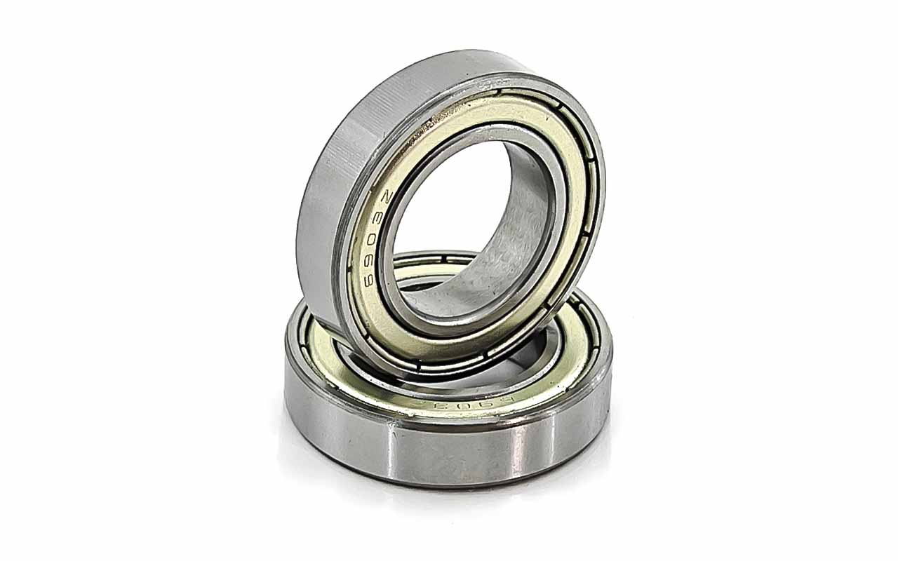 Подшипник однорядный радиальный с металлическими крышками ZZ, идеально подходящие для электродвигателей, вентиляторов, насосов и бытовой техники. Их ключевой особенностью являются защитные металлические шайбы ZZ — две бесконтактные стальные пластины с двух сторон, создающие лабиринтный барьер без трения о рабочие поверхности, что обеспечивает минимальный нагрев, отличное рассеивание тепла и сохранение смазки на длительный срок. Стандартный радиальный зазор CN обеспечивает стабильную работу в обычных температурных режимах без теплового расширения, предотвращая преждевременный износ; преимущества ZZ включают низкий момент трения (по сравнению с контактными 2RS), по своей быстроходности закрытые радиальные шарикоподшипники не уступают открытым, следовательно долговечность при высоких оборотах и простоту монтажа, они лучше всего проявляют себя в среднезагрязнённых условиях с умеренной влажностью, где не требуется полная герметизация от пыли или воды — в противном случае рекомендуются уплотнения 2RS. Смазка в закрытых подшипниках не теряет своего объема при эксплуатации, поэтому подшипники закрытого типа в меньшей степени подвержены механическому износу, удлинен срок службы шарикового механизма.
