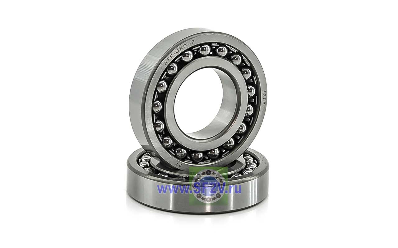 Шариковый подшипник качения, радиальный сферический двух рядный, открытый, самоустанавливающийся (самоцентрирующийся), посадка на вал цилиндрическая, К (Коническая). Неразборные, фиксируют положение вала и воспринимают небольшую двухстороннюю осевую нагрузку. Применяются в узлах общепромышленного назначения, могут работать при наличии перекосов от 1,5 до 3-х градусов.