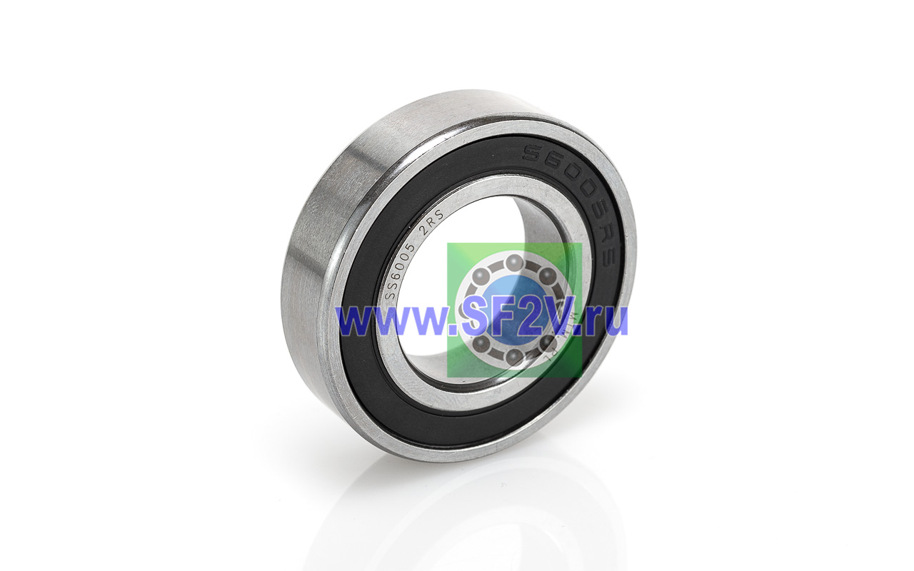 Шариковый подшипник, из нержавеющей стали (SS – Stainless Steel) радиальный, однорядный, пылевлагозащищенный, закрытый с двух сторон контактными резинометаллическими уплотнениями (2RS — Rubber Seals). Их ключевой особенностью является нержавеющая сталь, которая обеспечивает высокую коррозионную стойкость к влаге, химикатам и солям. Они могут работать в агрессивных средах и при высоких температурах, имеют низкий магнетизм (особенно из AISI 316 или 440C), обеспечивая долговечность и снижение эксплуатационных затрат по сравнению с обычными подшипниками. Уплотнения обеспечивают отличную герметичность: они надежно защищают внутренние дорожки и тела качения от пыли, грязи, влаги и других загрязнений, одновременно предотвращая утечку смазки, что значительно продлевает срок службы в эксплуатации без дополнительного обслуживания. Преимущества: низкий коэффициент трения, рабочая температура от -30°C до +90°C, кратковременно до +120°C(из-за риска разрушения уплотнений) относительно высокую скорость вращения (в зависимости от спецификации), способность выдерживать как радиальные, так и умеренные осевые нагрузки в обе стороны, а также компактную конструкцию из высококачественной стали для плавной работы в электродвигателях, насосах, бытовой технике, конвейерах и др.