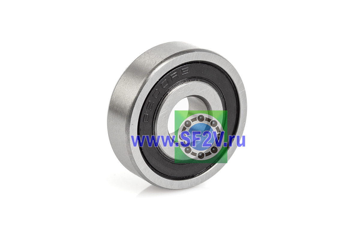 Шариковый подшипник, пылевлагозащищенный, радиальный, однорядный, закрытый с двух сторон контактными резинометаллическими уплотнениями (2RS — Rubber Seals), которые обеспечивают отличную герметичность: они надежно защищают внутренние дорожки и тела качения от пыли, грязи, влаги и других загрязнений, одновременно предотвращая утечку смазки, что значительно продлевает срок службы в эксплуатации без дополнительного обслуживания. Преимущества: низкий коэффициент трения, рабочая температура от -30°C до +90°C, кратковременно до +120°C(из-за риска разрушения уплотнений) относительно высокую скорость вращения (в зависимости от спецификации), способность выдерживать как радиальные, так и умеренные осевые нагрузки в обе стороны, а также компактную конструкцию из высококачественной стали для плавной работы в электродвигателях, насосах, бытовой технике, конвейерах и др.