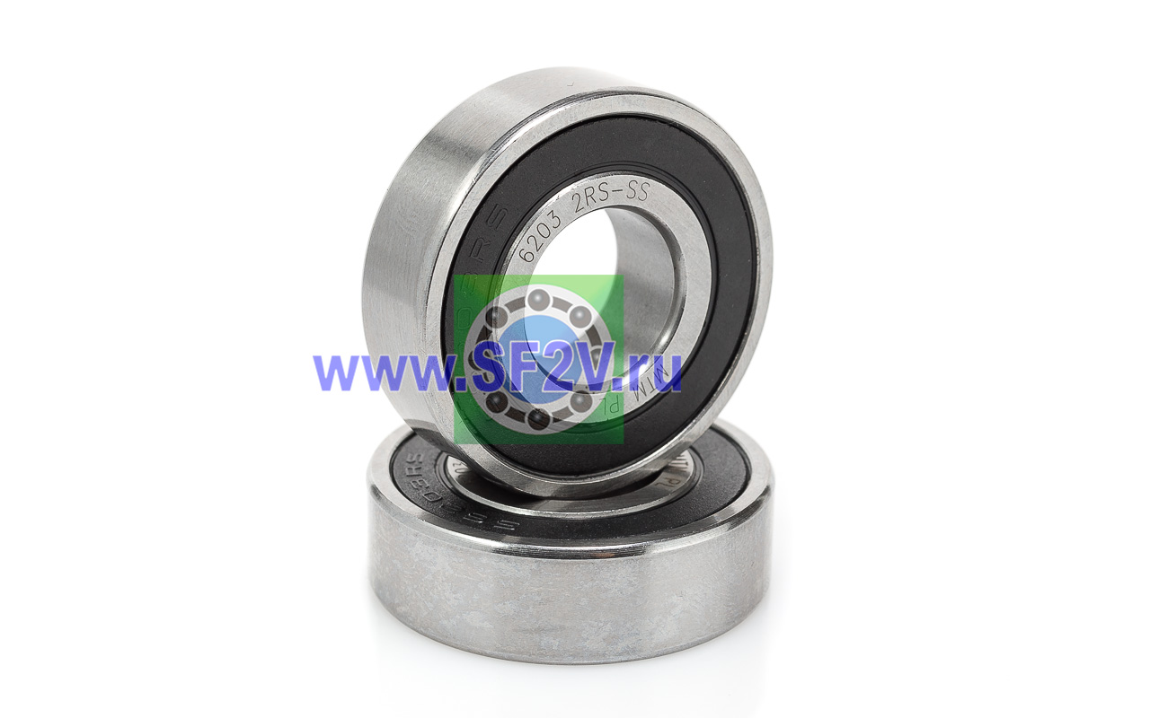 Шариковый подшипник, из нержавеющей стали (SS – Stainless Steel) радиальный, однорядный, пылевлагозащищенный, закрытый с двух сторон контактными резинометаллическими уплотнениями (2RS — Rubber Seals). Их ключевой особенностью является нержавеющая сталь, которая обеспечивает высокую коррозионную стойкость к влаге, химикатам и солям. Они могут работать в агрессивных средах и при высоких температурах, имеют низкий магнетизм (особенно из AISI 316 или 440C), обеспечивая долговечность и снижение эксплуатационных затрат по сравнению с обычными подшипниками. Уплотнения обеспечивают отличную герметичность: они надежно защищают внутренние дорожки и тела качения от пыли, грязи, влаги и других загрязнений, одновременно предотвращая утечку смазки, что значительно продлевает срок службы в эксплуатации без дополнительного обслуживания. Преимущества: низкий коэффициент трения, рабочая температура от -30°C до +90°C, кратковременно до +120°C(из-за риска разрушения уплотнений) относительно высокую скорость вращения (в зависимости от спецификации), способность выдерживать как радиальные, так и умеренные осевые нагрузки в обе стороны, а также компактную конструкцию из высококачественной стали для плавной работы в электродвигателях, насосах, бытовой технике, конвейерах и др.