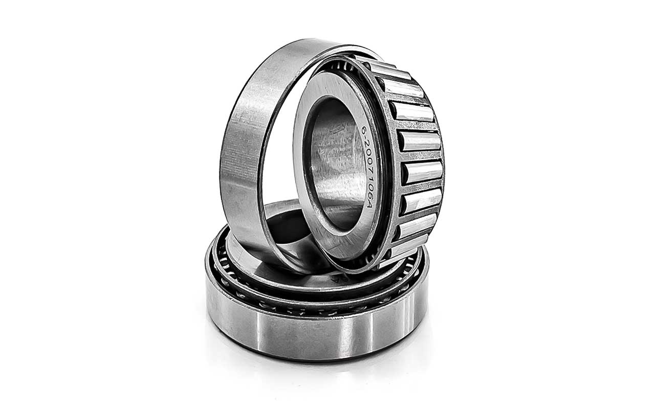 Конический роликовый подшипник, однорядный, предназначен для эксплуатации в подшипниковых узлах с высокими радиальными и осевыми нагрузками, имеет возможность регулировки как осевого так и радиального зазора. Конические роликоподшипники имеют дорожки качения внутреннего и наружного колец, между которыми находится комплект конических роликов. Если образующие конических поверхностей продолжить, то они сойдутся в одной точке, которая находится на оси подшипника. Это означает, что условия качения являются оптимальными. Конические роликоподшипники хорошо воспринимают комбинированные нагрузки (радиальные и осевые).