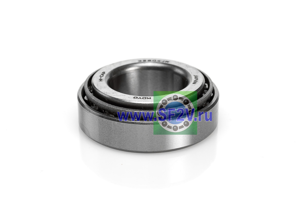 Конический роликовый подшипник, однорядный, предназначен для эксплуатации в подшипниковых узлах с высокими радиальными и осевыми нагрузками, имеет возможность регулировки как осевого так и радиального зазора. Конические роликоподшипники имеют дорожки качения внутреннего и наружного колец, между которыми находится комплект конических роликов. Если образующие конических поверхностей продолжить, то они сойдутся в одной точке, которая находится на оси подшипника. Это означает, что условия качения являются оптимальными. Конические роликоподшипники хорошо воспринимают комбинированные нагрузки (радиальные и осевые).