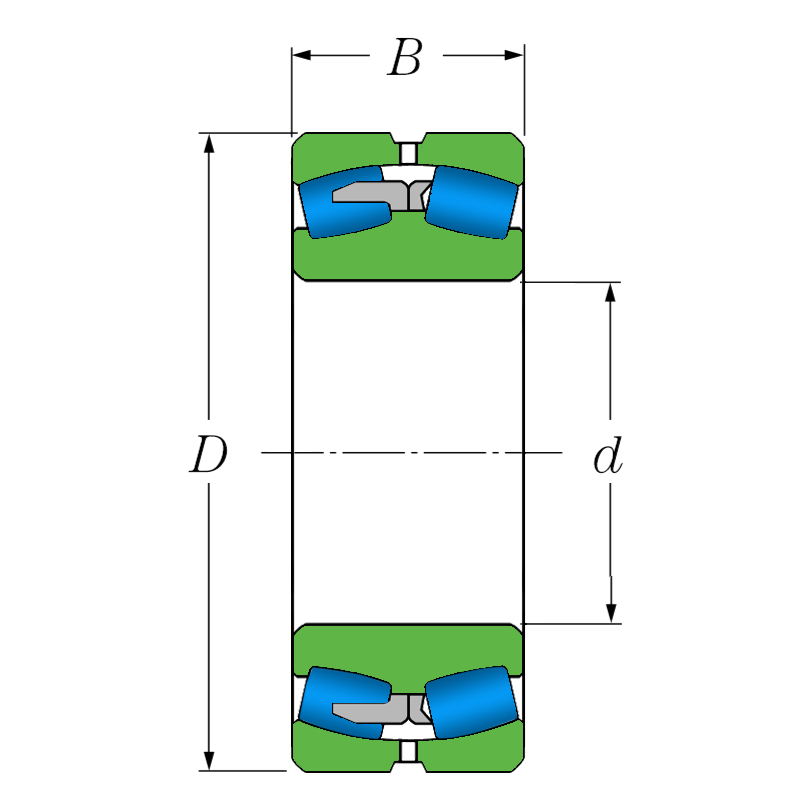 Внутренняя конструкция сферических роликоподшипников отличается в зависимости от серии и типоразмера. Сферические роликоподшипники могут быть с цилиндрическим или коническим отверстием, данный тип изделия выполнен с цилиндрическим посадочным отверстием.