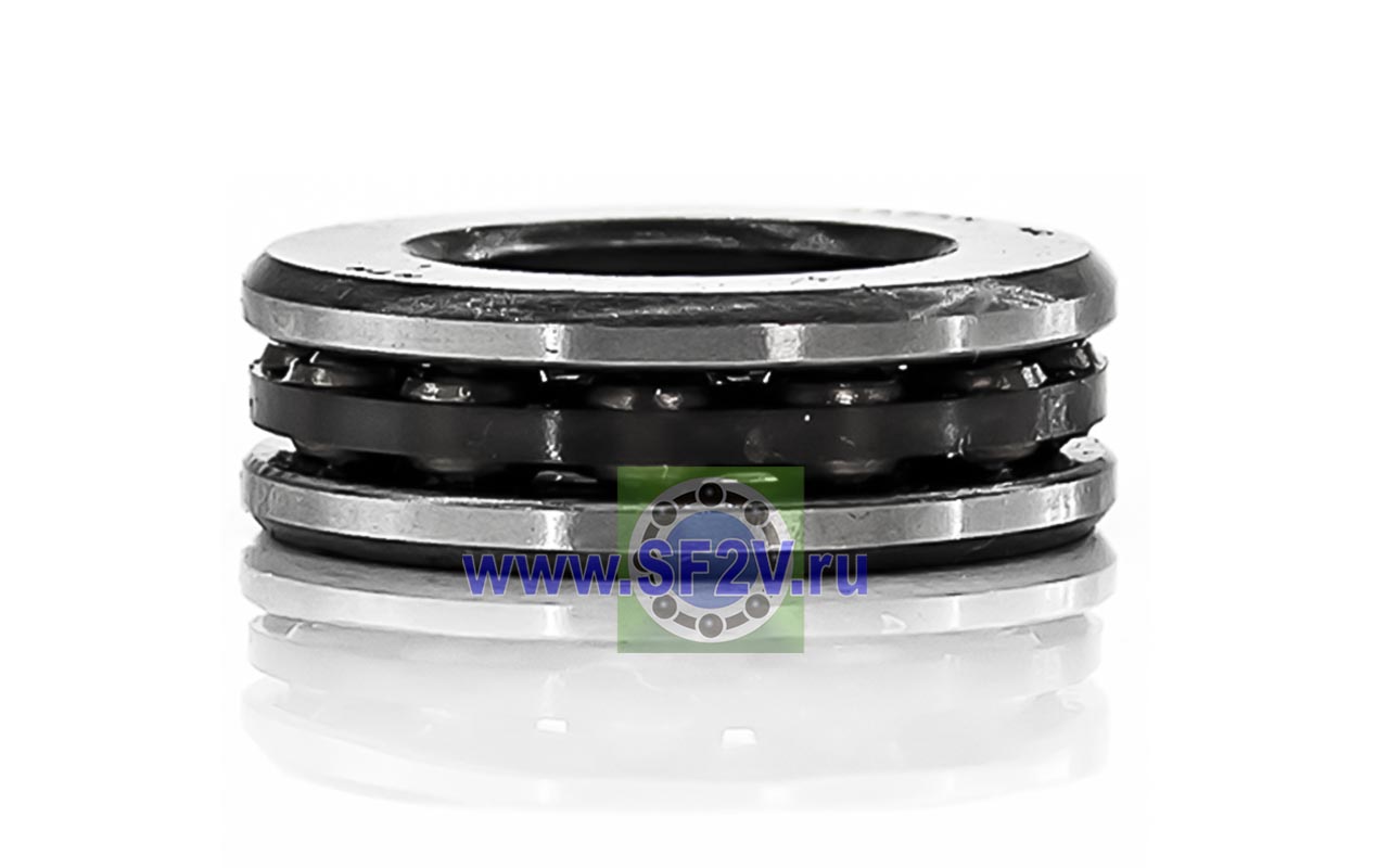 Упорный шарикоподшипник одинарный разборный. Воспринимают только осевые нагрузки и жестко фиксируют положение вала. Применимы для опор тихоходных валов, задвижек, крюков мостовых кранов, поворотных и нажимных устройств и т.д.
