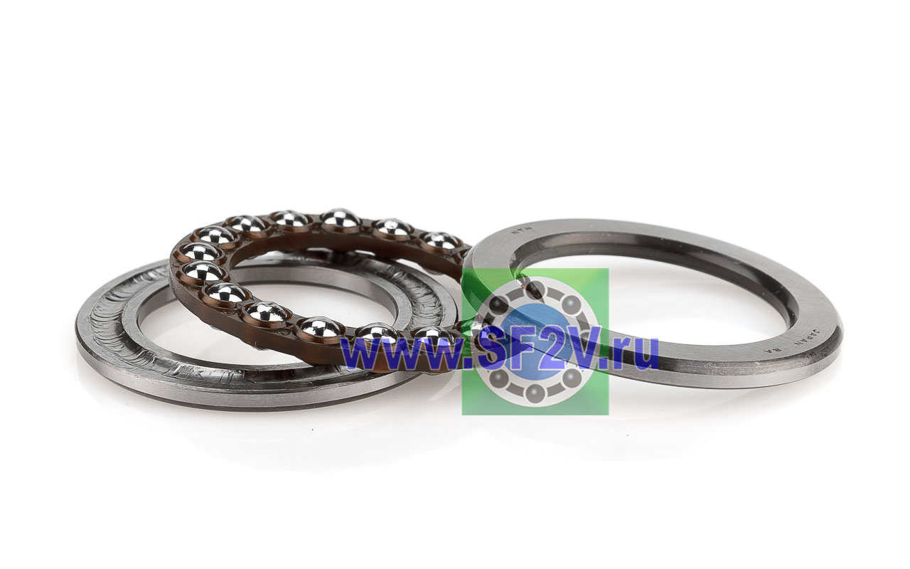 Упорный шарикоподшипник одинарный разборный. Воспринимают только осевые нагрузки и жестко фиксируют положение вала. Применимы для опор тихоходных валов, задвижек, крюков мостовых кранов, поворотных и нажимных устройств и т.д.