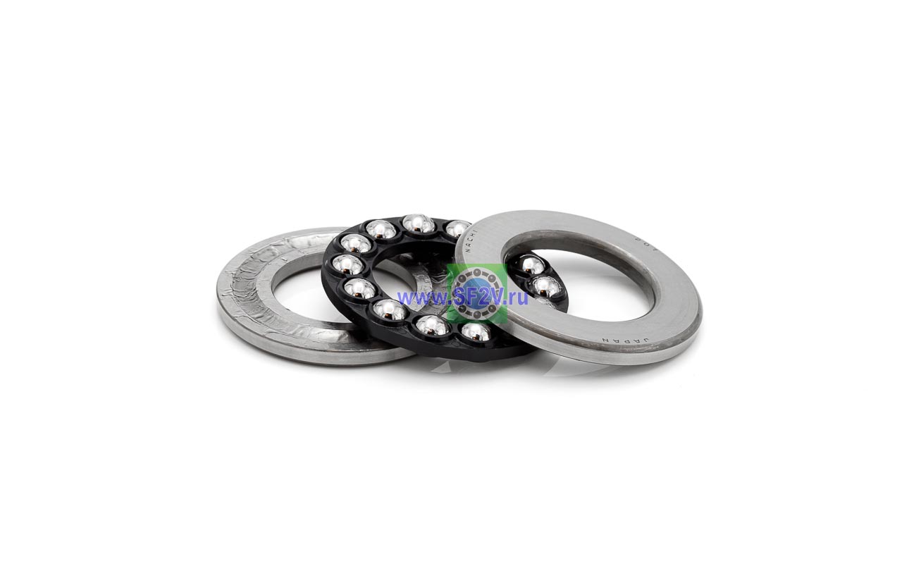 Упорный шарикоподшипник одинарный разборный. Воспринимают только осевые нагрузки и жестко фиксируют положение вала. Применимы для опор тихоходных валов, задвижек, крюков мостовых кранов, поворотных и нажимных устройств и т.д.