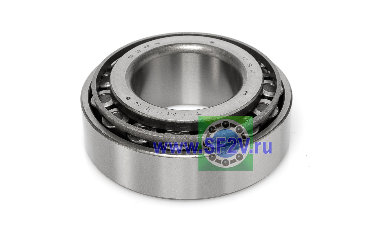 Конический роликовый подшипник, однорядный, предназначен для эксплуатации в подшипниковых узлах с высокими радиальными и осевыми нагрузками, имеет возможность регулировки как осевого так и радиального зазора. Конические роликоподшипники имеют дорожки качения внутреннего и наружного колец, между которыми находится комплект конических роликов. Если образующие конических поверхностей продолжить, то они сойдутся в одной точке, которая находится на оси подшипника. Это означает, что условия качения являются оптимальными. Конические роликоподшипники хорошо воспринимают комбинированные нагрузки (радиальные и осевые).