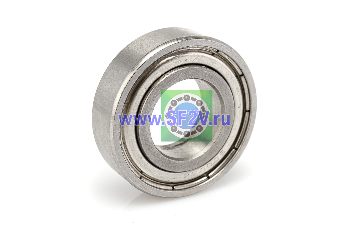 Подшипник из нержавеющей стали (SS – Stainless Steel) однорядный радиальный с металлическими крышками (ZZ), идеально подходящие для электродвигателей, вентиляторов, насосов и бытовой техники. Их ключевой особенностью является нержавеющая сталь, которая обеспечивает высокую коррозионную стойкость к влаге, химикатам и солям. Они могут работать в агрессивных средах и при высоких температурах, имеют низкий магнетизм (особенно из AISI 316 или 440C), обеспечивая долговечность и снижение эксплуатационных затрат по сравнению с обычными подшипниками. Защитные металлические шайбы ZZ — две бесконтактные стальные пластины с двух сторон, создающие лабиринтный барьер без трения о рабочие поверхности, что обеспечивает минимальный нагрев, отличное рассеивание тепла и сохранение смазки на длительный срок. Стандартный радиальный зазор CN(в маркировке не указывается) обеспечивает стабильную работу в обычных температурных режимах без теплового расширения, предотвращая преждевременный износ; преимущества ZZ включают низкий момент трения (по сравнению с контактными 2RS), по своей быстроходности закрытые радиальные шарикоподшипники не уступают открытым, следовательно долговечность при высоких оборотах и простоту монтажа, они лучше всего проявляют себя в средне загрязнённых условиях с умеренной влажностью, где не требуется полная герметизация от пыли или воды — в противном случае рекомендуются уплотнения 2RS. Смазка в закрытых подшипниках не теряет своего объема при эксплуатации, поэтому подшипники закрытого типа в меньшей степени подвержены механическому износу, удлинен срок службы шарикового механизма.