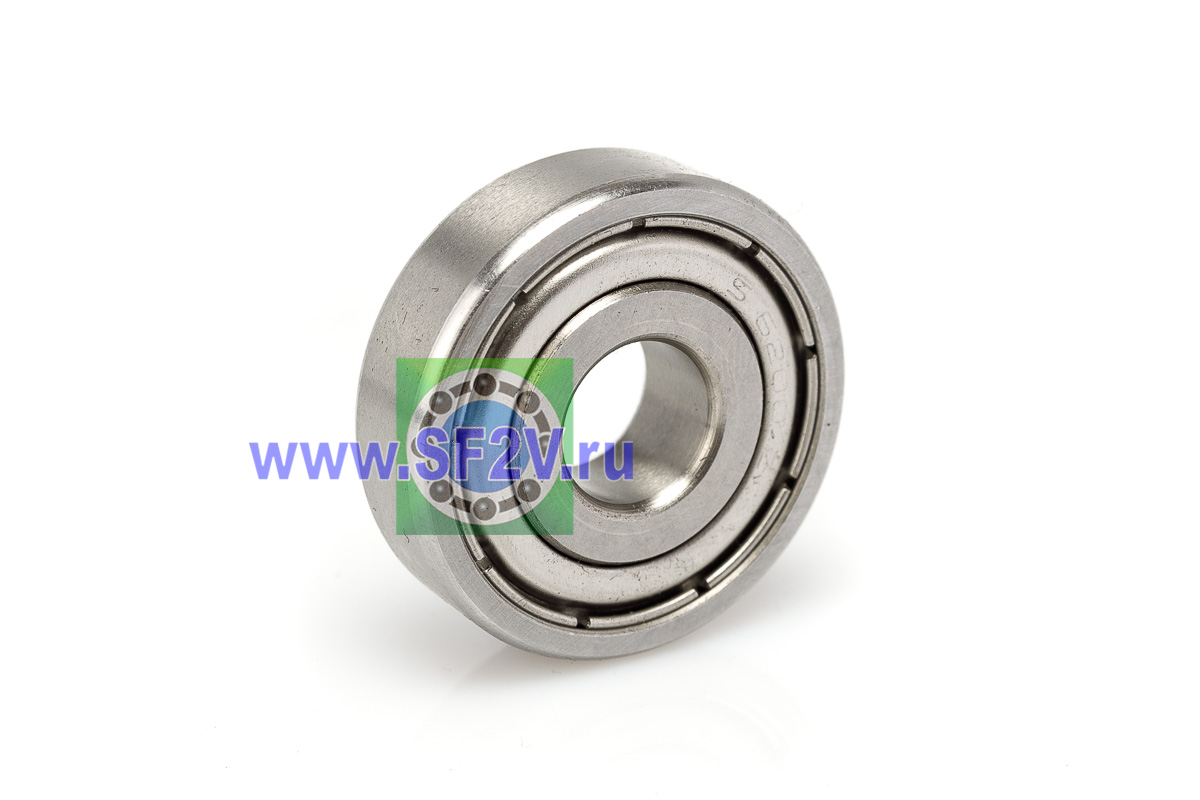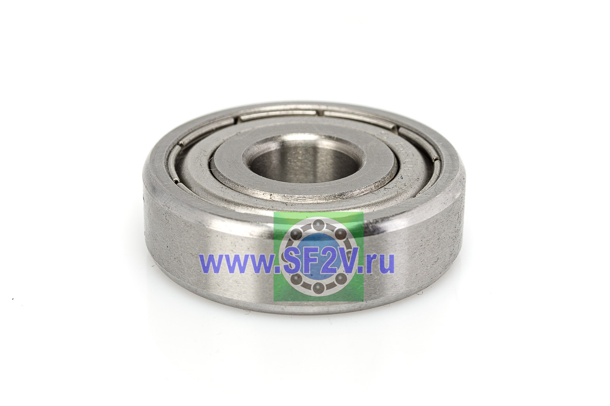 Подшипник из нержавеющей стали (SS – Stainless Steel) однорядный радиальный с металлическими крышками (ZZ), идеально подходящие для электродвигателей, вентиляторов, насосов и бытовой техники. Их ключевой особенностью является нержавеющая сталь, которая обеспечивает высокую коррозионную стойкость к влаге, химикатам и солям. Они могут работать в агрессивных средах и при высоких температурах, имеют низкий магнетизм (особенно из AISI 316 или 440C), обеспечивая долговечность и снижение эксплуатационных затрат по сравнению с обычными подшипниками. Защитные металлические шайбы ZZ — две бесконтактные стальные пластины с двух сторон, создающие лабиринтный барьер без трения о рабочие поверхности, что обеспечивает минимальный нагрев, отличное рассеивание тепла и сохранение смазки на длительный срок. Стандартный радиальный зазор CN(в маркировке не указывается) обеспечивает стабильную работу в обычных температурных режимах без теплового расширения, предотвращая преждевременный износ; преимущества ZZ включают низкий момент трения (по сравнению с контактными 2RS), по своей быстроходности закрытые радиальные шарикоподшипники не уступают открытым, следовательно долговечность при высоких оборотах и простоту монтажа, они лучше всего проявляют себя в средне загрязнённых условиях с умеренной влажностью, где не требуется полная герметизация от пыли или воды — в противном случае рекомендуются уплотнения 2RS. Смазка в закрытых подшипниках не теряет своего объема при эксплуатации, поэтому подшипники закрытого типа в меньшей степени подвержены механическому износу, удлинен срок службы шарикового механизма.
