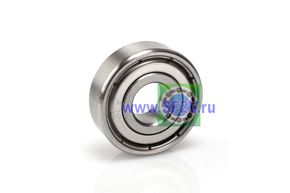 Подшипник из нержавеющей стали (SS – Stainless Steel) однорядный радиальный с металлическими крышками (ZZ), идеально подходящие для электродвигателей, вентиляторов, насосов и бытовой техники. Их ключевой особенностью является нержавеющая сталь, которая обеспечивает высокую коррозионную стойкость к влаге, химикатам и солям. Они могут работать в агрессивных средах и при высоких температурах, имеют низкий магнетизм (особенно из AISI 316 или 440C), обеспечивая долговечность и снижение эксплуатационных затрат по сравнению с обычными подшипниками. Защитные металлические шайбы ZZ — две бесконтактные стальные пластины с двух сторон, создающие лабиринтный барьер без трения о рабочие поверхности, что обеспечивает минимальный нагрев, отличное рассеивание тепла и сохранение смазки на длительный срок. Стандартный радиальный зазор CN(в маркировке не указывается) обеспечивает стабильную работу в обычных температурных режимах без теплового расширения, предотвращая преждевременный износ; преимущества ZZ включают низкий момент трения (по сравнению с контактными 2RS), по своей быстроходности закрытые радиальные шарикоподшипники не уступают открытым, следовательно долговечность при высоких оборотах и простоту монтажа, они лучше всего проявляют себя в средне загрязнённых условиях с умеренной влажностью, где не требуется полная герметизация от пыли или воды — в противном случае рекомендуются уплотнения 2RS. Смазка в закрытых подшипниках не теряет своего объема при эксплуатации, поэтому подшипники закрытого типа в меньшей степени подвержены механическому износу, удлинен срок службы шарикового механизма.