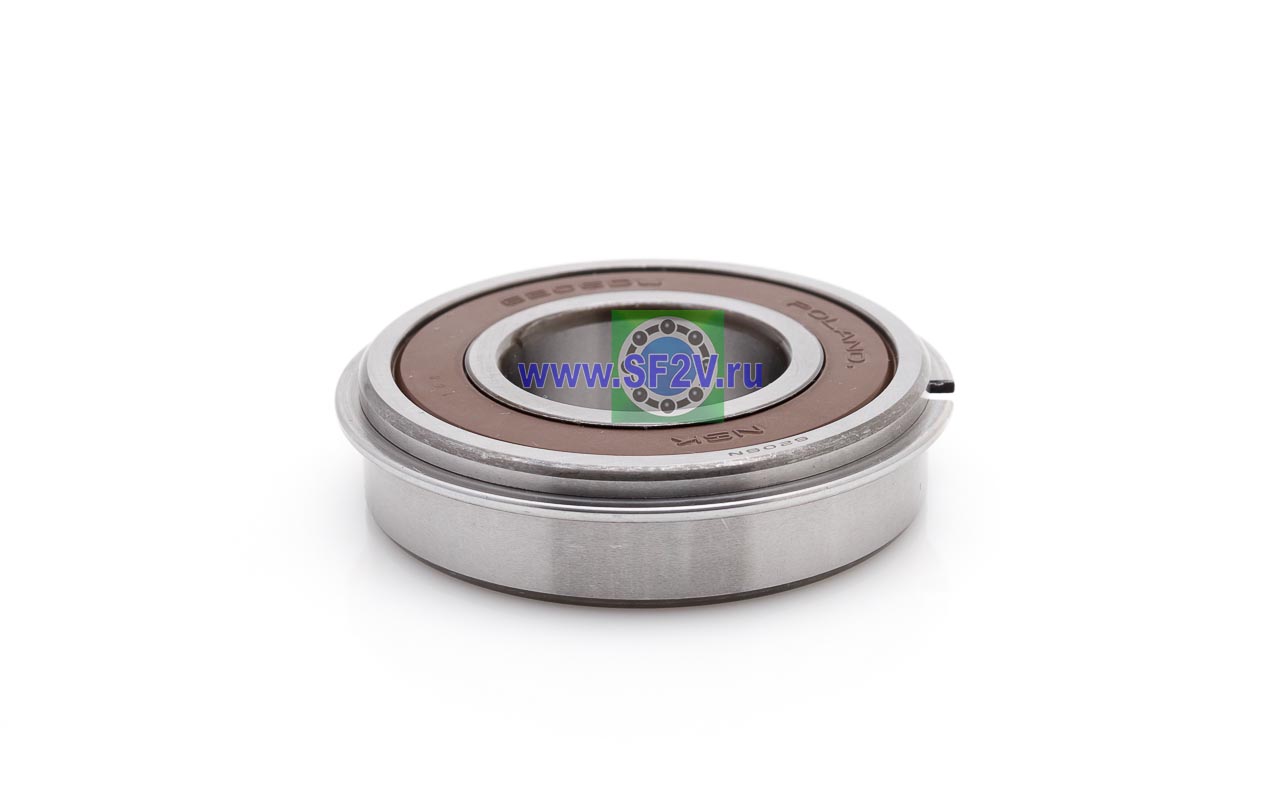 Радиальный шарикоподшипник с проточкой и стопорным кольцом на внешнем кольце. Стопорное кольцо служит для осевой фиксации подшипника, значительно упрощает монтаж, демонтаж, механическую обработку отверстий в корпусе и вала.