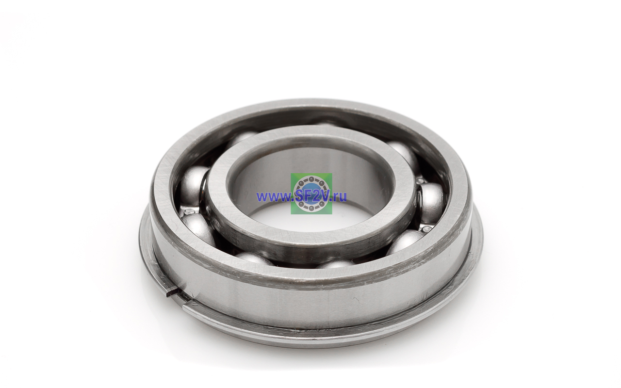 Радиальный шарикоподшипник с проточкой и стопорным кольцом на внешнем кольце. Стопорное кольцо служит для осевой фиксации подшипника, значительно упрощает монтаж, демонтаж, механическую обработку отверстий в корпусе и вала.