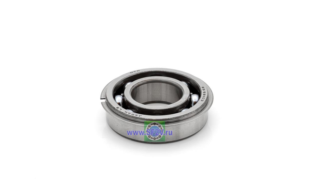 Шариковый подшипник, с канавкой и стопорным кольцом в сборе NR, однорядный радиальный открытый, c представляет собой шарикоподшипник с одним рядом шариков, предназначенный в основном для восприятия радиальных нагрузок и небольших осевых нагрузок в обоих направлениях. С канавкой и стопорным кольцом в сборе NR. При такой конструкции, подшипник сразу готов к фиксации в корпусе, стопорное кольцо жёстко ограничивает его осевое перемещение по наружному диаметру, применяется, когда установка не предусматривает фланец на корпусе или опорную гайку на валу, а осевая фиксация нужна именно по наружной обойме. Без стопорного кольца можно устанавливать, как обычный подшипник, канавка никак не влияет на работу подшипника. Данный подшипник имеет увеличенный радиальный (тепловой) зазор (C3), который предотвращает заклинивание при высоких температурах (недостаточном охлаждении подшипникового узла), резких и частых сменах режимов работы подшипника (перепады нагрузок, скоростей вращения, температур), а также компенсирует избыточные точечные нагрузки и микросмещения при вибрациях. Внутреннее и наружное кольца имеют глубокие дорожки качения, а сепаратор удерживает шарики на равных расстояниях друг от друга. Открытость конструкции означает отсутствие уплотнений и защитных шайб, что обеспечивает низкое трение и простоту смазывания, но требует более тщательной защиты от загрязнений, может работать в масляной ванне. Такие подшипники применяются в электродвигателях, вентиляторах, редукторах и других узлах, где важны высокие скорости вращения и минимальные потери на трение.