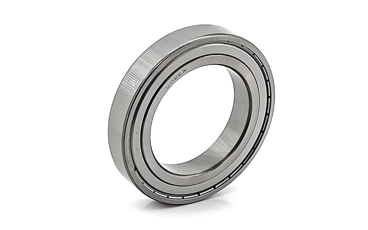 Подшипник однорядный радиальный с металлическими крышками ZZ, идеально подходящие для электродвигателей, вентиляторов, насосов и бытовой техники. Их ключевой особенностью являются защитные металлические шайбы ZZ — две бесконтактные стальные пластины с двух сторон, создающие лабиринтный барьер без трения о рабочие поверхности, что обеспечивает минимальный нагрев, отличное рассеивание тепла и сохранение смазки на длительный срок. Стандартный радиальный зазор CN обеспечивает стабильную работу в обычных температурных режимах без теплового расширения, предотвращая преждевременный износ; преимущества ZZ включают низкий момент трения (по сравнению с контактными 2RS), по своей быстроходности закрытые радиальные шарикоподшипники не уступают открытым, следовательно долговечность при высоких оборотах и простоту монтажа, они лучше всего проявляют себя в среднезагрязнённых условиях с умеренной влажностью, где не требуется полная герметизация от пыли или воды — в противном случае рекомендуются уплотнения 2RS. Смазка в закрытых подшипниках не теряет своего объема при эксплуатации, поэтому подшипники закрытого типа в меньшей степени подвержены механическому износу, удлинен срок службы шарикового механизма.