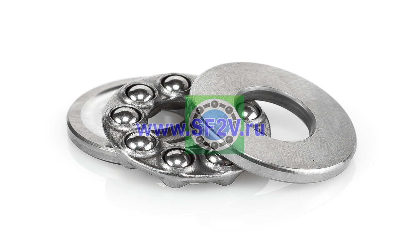 Упорный шарикоподшипник одинарный разборный. Воспринимают только осевые нагрузки и жестко фиксируют положение вала. Применимы для опор тихоходных валов, задвижек, крюков мостовых кранов, поворотных и нажимных устройств и т.д.