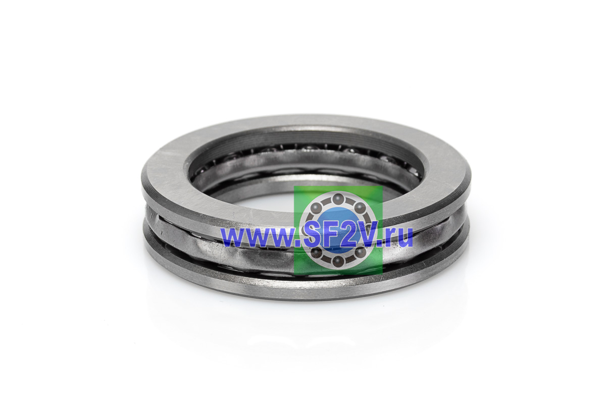 Упорный шарикоподшипник одинарный разборный. Воспринимают только осевые нагрузки и жестко фиксируют положение вала. Применимы для опор тихоходных валов, задвижек, крюков мостовых кранов, поворотных и нажимных устройств и т.д.