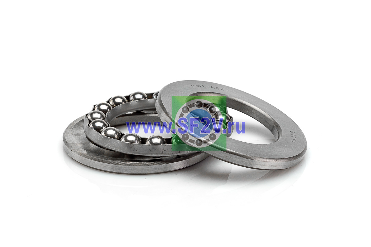 Упорный шарикоподшипник одинарный разборный. Воспринимают только осевые нагрузки и жестко фиксируют положение вала. Применимы для опор тихоходных валов, задвижек, крюков мостовых кранов, поворотных и нажимных устройств и т.д.