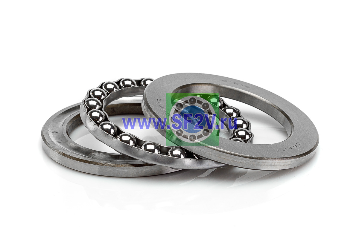 Упорный шарикоподшипник одинарный разборный. Воспринимают только осевые нагрузки и жестко фиксируют положение вала. Применимы для опор тихоходных валов, задвижек, крюков мостовых кранов, поворотных и нажимных устройств и т.д.