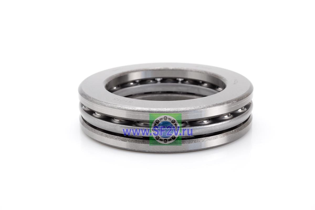 Упорный шарикоподшипник одинарный разборный. Воспринимают только осевые нагрузки и жестко фиксируют положение вала. Применимы для опор тихоходных валов, задвижек, крюков мостовых кранов, поворотных и нажимных устройств и т.д.