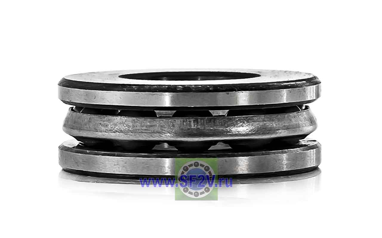 Упорный шарикоподшипник одинарный разборный. Воспринимают только осевые нагрузки и жестко фиксируют положение вала. Применимы для опор тихоходных валов, задвижек, крюков мостовых кранов, поворотных и нажимных устройств и т.д.