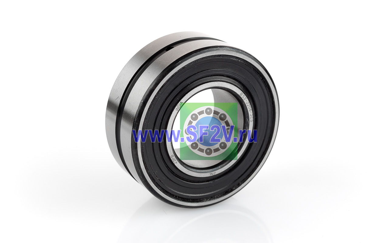 Сферические двухрядные роликоподшипники, являются самоустанавливающимися и способный нести высокую радиальную нагрузку, конструктивно достигнута возможность работы с отклонением соосности вала(перекос внутреннего кольца относительно внешнего) до 2,5 градусов и соответственно не чувствительны к ошибкам в соосности вала и корпуса, а также к изгибу вала. Сферические роликоподшипники имеют два ряда роликов с общей сферической дорожкой качения в наружном кольце. Две дорожки качения внутреннего кольца расположены под углом относительно оси подшипника. Данный тип подшипника выполнен в закрытом исполнении, крышки выполнены из бутадиенакрилнитрильного каучука (NBR), суффикс 2CS.