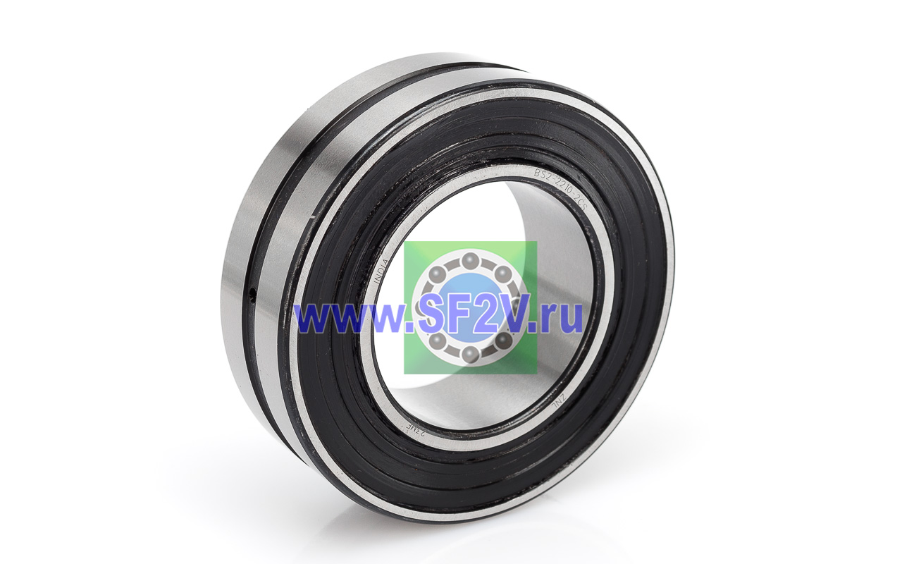 Сферические двухрядные роликоподшипники, являются самоустанавливающимися и способный нести высокую радиальную нагрузку, конструктивно достигнута возможность работы с отклонением соосности вала(перекос внутреннего кольца относительно внешнего) до 2,5 градусов и соответственно не чувствительны к ошибкам в соосности вала и корпуса, а также к изгибу вала. Сферические роликоподшипники имеют два ряда роликов с общей сферической дорожкой качения в наружном кольце. Две дорожки качения внутреннего кольца расположены под углом относительно оси подшипника. Данный тип подшипника выполнен в закрытом исполнении, крышки выполнены из бутадиенакрилнитрильного каучука (NBR), суффикс 2CS.