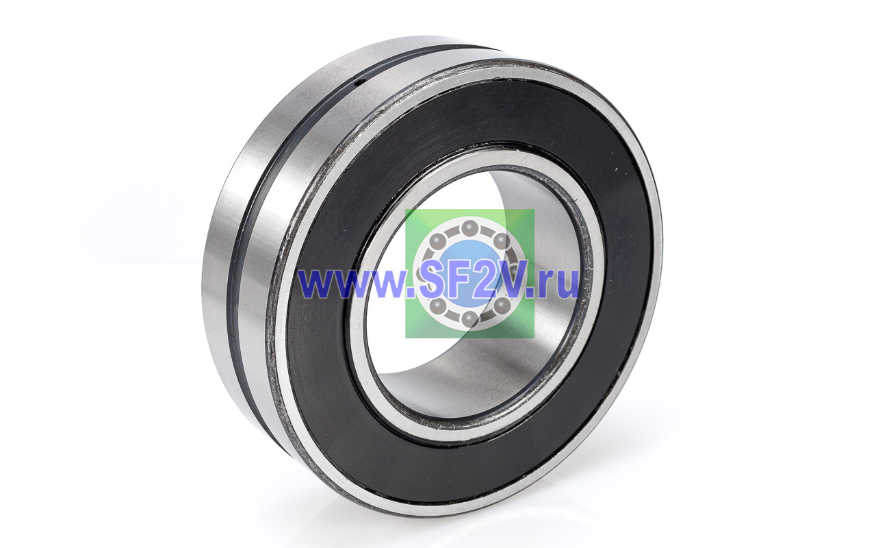 Сферические двухрядные роликоподшипники, являются самоустанавливающимися и способный нести высокую радиальную нагрузку, конструктивно достигнута возможность работы с отклонением соосности вала(перекос внутреннего кольца относительно внешнего) до 2,5 градусов и соответственно не чувствительны к ошибкам в соосности вала и корпуса, а также к изгибу вала. Сферические роликоподшипники имеют два ряда роликов с общей сферической дорожкой качения в наружном кольце. Две дорожки качения внутреннего кольца расположены под углом относительно оси подшипника. Данный тип подшипника выполнен в закрытом исполнении, крышки выполнены из бутадиенакрилнитрильного каучука (NBR), суффикс 2CS.