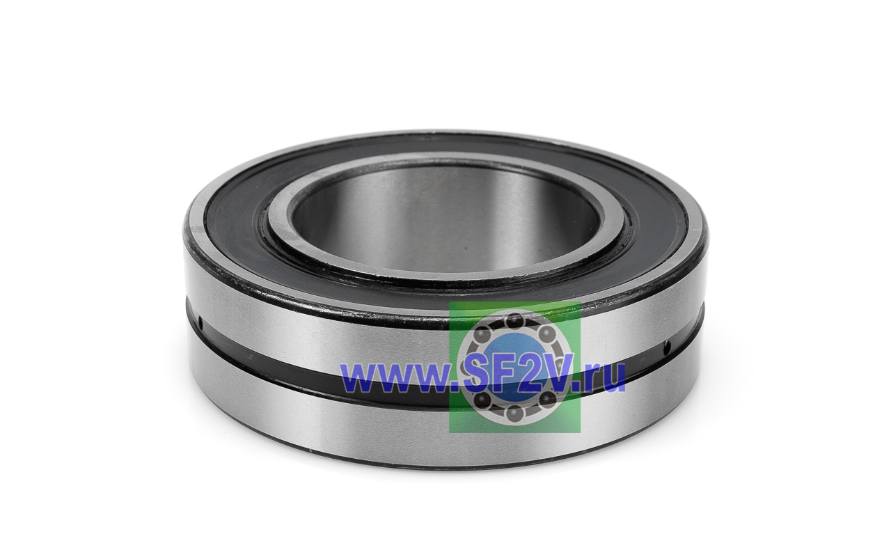 Сферические двухрядные роликоподшипники, являются самоустанавливающимися и способный нести высокую радиальную нагрузку, конструктивно достигнута возможность работы с отклонением соосности вала(перекос внутреннего кольца относительно внешнего) до 2,5 градусов и соответственно не чувствительны к ошибкам в соосности вала и корпуса, а также к изгибу вала. Сферические роликоподшипники имеют два ряда роликов с общей сферической дорожкой качения в наружном кольце. Две дорожки качения внутреннего кольца расположены под углом относительно оси подшипника. Данный тип подшипника выполнен в закрытом исполнении, крышки выполнены из бутадиенакрилнитрильного каучука (NBR), суффикс 2CS.
