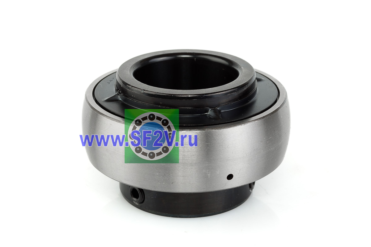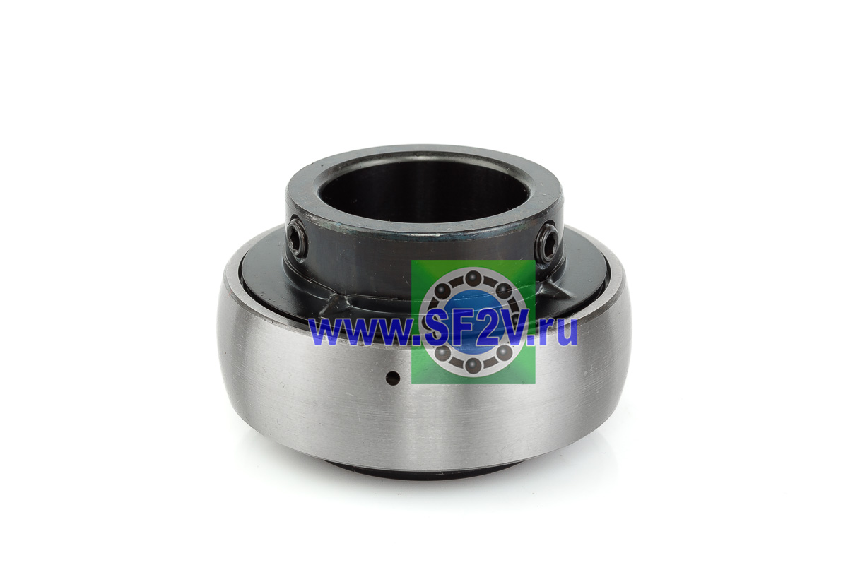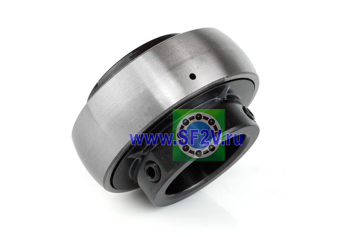 Шариковый подшипник, корпусной, закрытый с 2-х сторон. Крепление на вал с помощью затяжных болтов на внутреннем кольце. Подшипник типа UC – это корпусный подшипник, который используется для установки в корпусные подшипниковые узлы всех типов. Подшипник имеет сферическую наружную обойму, а корпус - сферическое посадочное отверстие. Такая конструкция позволяет подшипнику слегка перемещаться в корпусе, за счет чего компенсируется перекос вала или неточность монтажа. Крепление подшипника на валу осуществляется при помощи стопорных винтов. Кроме того, у такого подшипника есть специальные отверстия для замены смазки. Подшипники типа UC применяются в основном в качестве опор коротких валов, а также для тех мест установки, где возможно лишь небольшое тепловое линейное расширение. Осевые зазоры подшипника компенсируют небольшие удлинения вала. Подшипники типа UC применяются при нормальных нагрузках, низких или средних скоростях вращения.