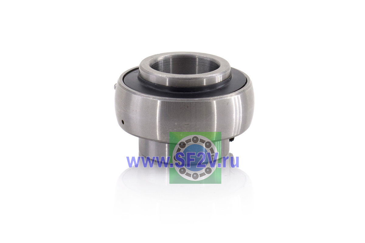 Шариковый подшипник, корпусной, закрытый с 2-х сторон. Крепление на вал с помощью затяжных болтов на внутреннем кольце. Подшипник типа UC – это корпусный подшипник, который используется для установки в корпусные подшипниковые узлы всех типов. Подшипник имеет сферическую наружную обойму, а корпус - сферическое посадочное отверстие. Такая конструкция позволяет подшипнику слегка перемещаться в корпусе, за счет чего компенсируется перекос вала или неточность монтажа. Крепление подшипника на валу осуществляется при помощи стопорных винтов. Кроме того, у такого подшипника есть специальные отверстия для замены смазки. Подшипники типа UC применяются в основном в качестве опор коротких валов, а также для тех мест установки, где возможно лишь небольшое тепловое линейное расширение. Осевые зазоры подшипника компенсируют небольшие удлинения вала. Подшипники типа UC применяются при нормальных нагрузках, низких или средних скоростях вращения.