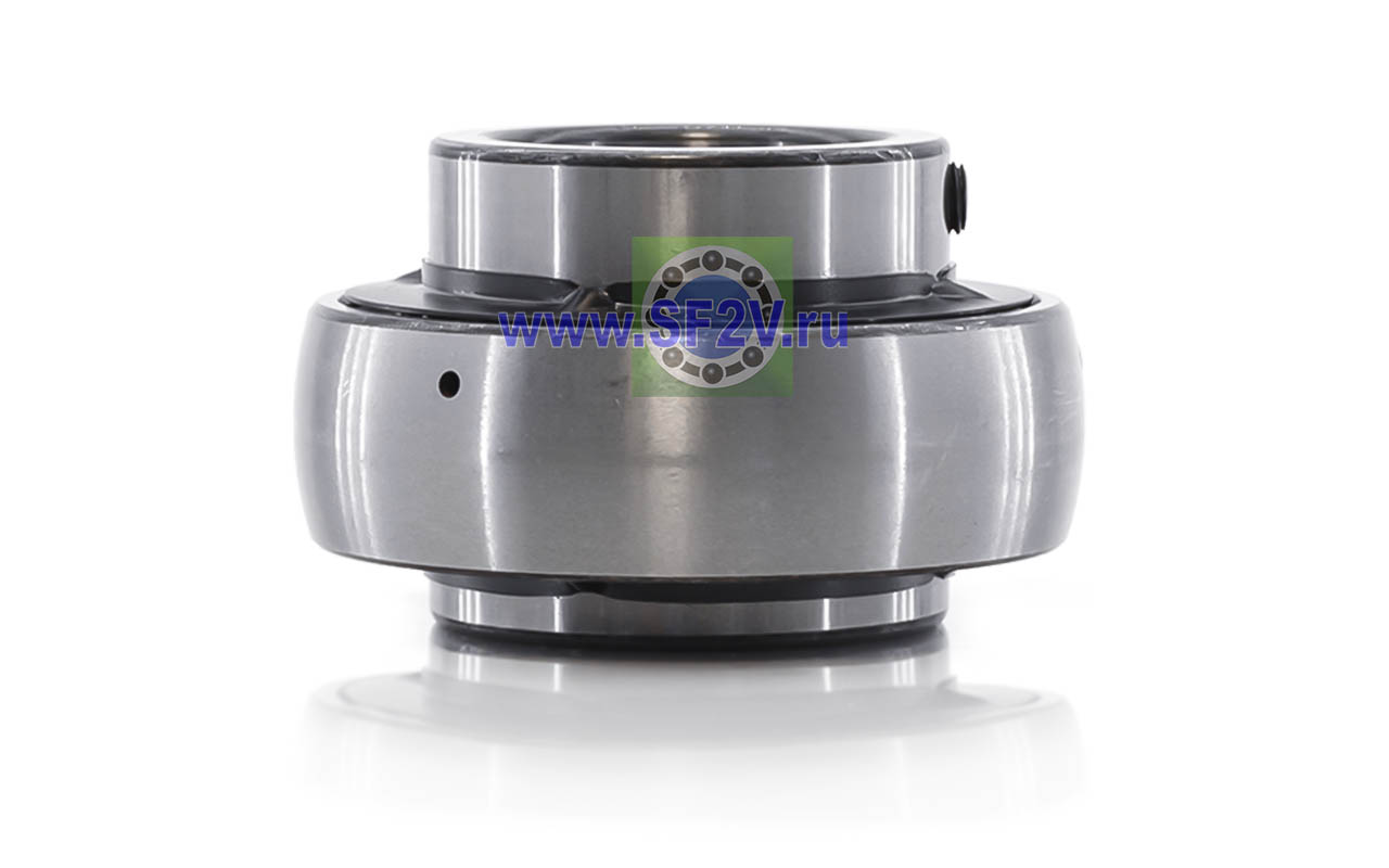 Шариковый подшипник, корпусной, закрытый с 2-х сторон. Крепление на вал с помощью затяжных болтов на внутреннем кольце. Подшипник типа UC – это корпусный подшипник, который используется для установки в корпусные подшипниковые узлы всех типов. Подшипник имеет сферическую наружную обойму, а корпус - сферическое посадочное отверстие. Такая конструкция позволяет подшипнику слегка перемещаться в корпусе, за счет чего компенсируется перекос вала или неточность монтажа. Крепление подшипника на валу осуществляется при помощи стопорных винтов. Кроме того, у такого подшипника есть специальные отверстия для замены смазки. Подшипники типа UC применяются в основном в качестве опор коротких валов, а также для тех мест установки, где возможно лишь небольшое тепловое линейное расширение. Осевые зазоры подшипника компенсируют небольшие удлинения вала. Подшипники типа UC применяются при нормальных нагрузках, низких или средних скоростях вращения.
