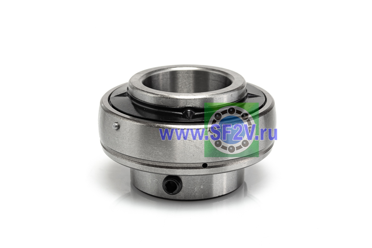 Шариковый подшипник, корпусной, закрытый с 2-х сторон. Крепление на вал с помощью затяжных болтов на внутреннем кольце. Подшипник типа UC – это корпусный подшипник, который используется для установки в корпусные подшипниковые узлы всех типов. Подшипник имеет сферическую наружную обойму, а корпус - сферическое посадочное отверстие. Такая конструкция позволяет подшипнику слегка перемещаться в корпусе, за счет чего компенсируется перекос вала или неточность монтажа. Крепление подшипника на валу осуществляется при помощи стопорных винтов. Кроме того, у такого подшипника есть специальные отверстия для замены смазки. Подшипники типа UC применяются в основном в качестве опор коротких валов, а также для тех мест установки, где возможно лишь небольшое тепловое линейное расширение. Осевые зазоры подшипника компенсируют небольшие удлинения вала. Подшипники типа UC применяются при нормальных нагрузках, низких или средних скоростях вращения.