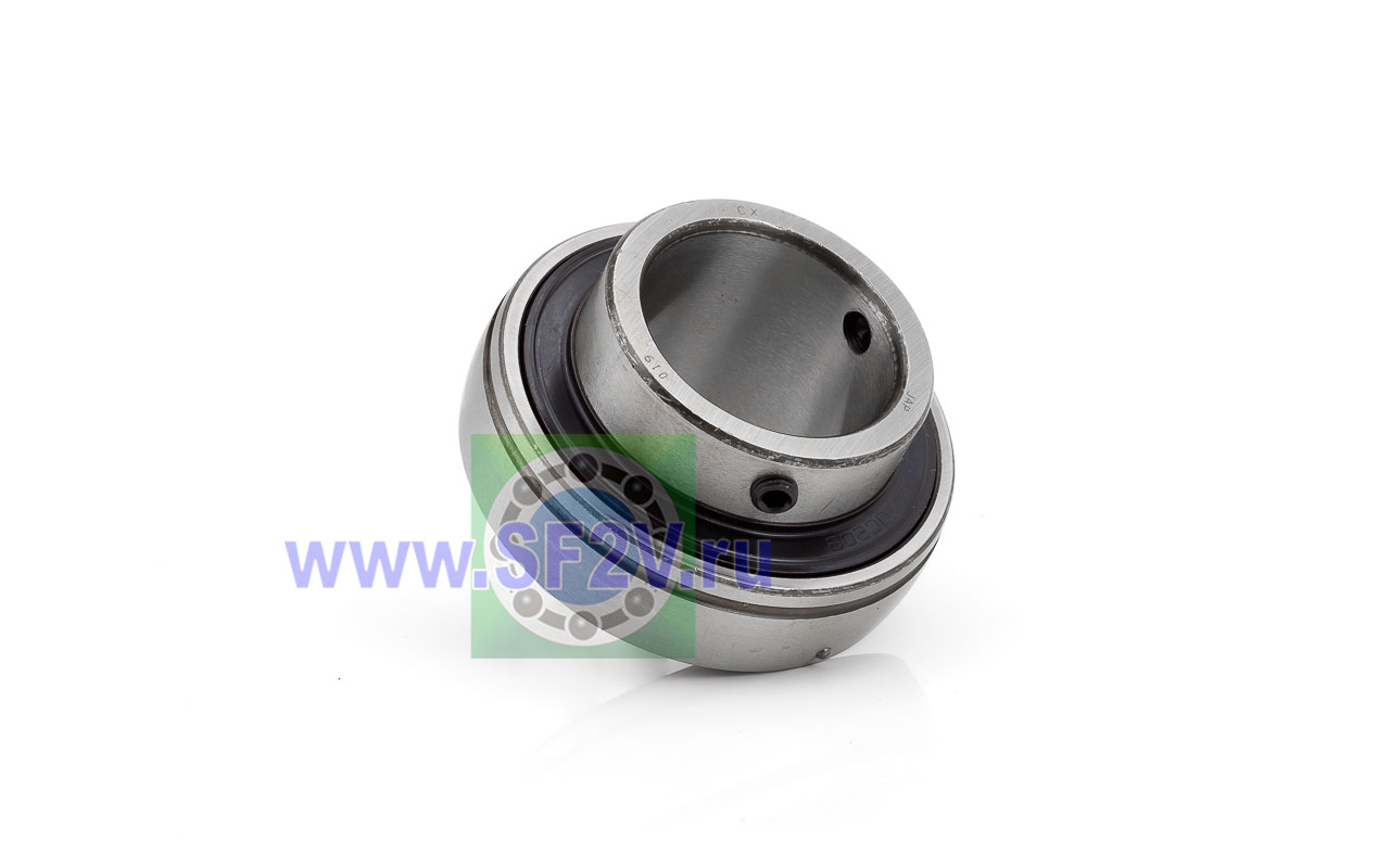 Шариковый подшипник, корпусной, закрытый с 2-х сторон. Крепление на вал с помощью затяжных болтов на внутреннем кольце. Подшипник типа UC – это корпусный подшипник, который используется для установки в корпусные подшипниковые узлы всех типов. Подшипник имеет сферическую наружную обойму, а корпус - сферическое посадочное отверстие. Такая конструкция позволяет подшипнику слегка перемещаться в корпусе, за счет чего компенсируется перекос вала или неточность монтажа. Крепление подшипника на валу осуществляется при помощи стопорных винтов. Кроме того, у такого подшипника есть специальные отверстия для замены смазки. Подшипники типа UC применяются в основном в качестве опор коротких валов, а также для тех мест установки, где возможно лишь небольшое тепловое линейное расширение. Осевые зазоры подшипника компенсируют небольшие удлинения вала. Подшипники типа UC применяются при нормальных нагрузках, низких или средних скоростях вращения.
