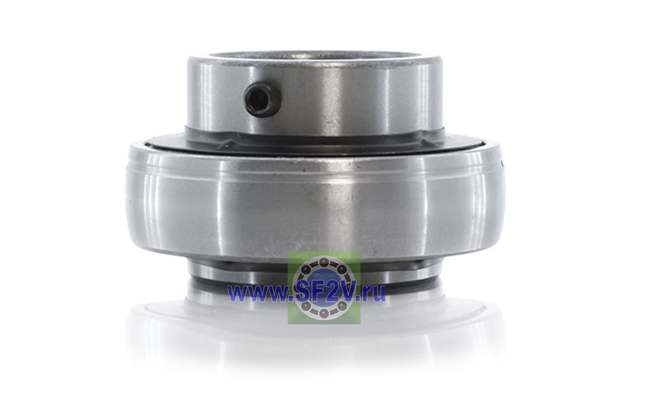 Шариковый подшипник, корпусной, закрытый с 2-х сторон. Крепление на вал с помощью затяжных болтов на внутреннем кольце. Подшипник типа UC – это корпусный подшипник, который используется для установки в корпусные подшипниковые узлы всех типов. Подшипник имеет сферическую наружную обойму, а корпус - сферическое посадочное отверстие. Такая конструкция позволяет подшипнику слегка перемещаться в корпусе, за счет чего компенсируется перекос вала или неточность монтажа. Крепление подшипника на валу осуществляется при помощи стопорных винтов. Кроме того, у такого подшипника есть специальные отверстия для замены смазки. Подшипники типа UC применяются в основном в качестве опор коротких валов, а также для тех мест установки, где возможно лишь небольшое тепловое линейное расширение. Осевые зазоры подшипника компенсируют небольшие удлинения вала. Подшипники типа UC применяются при нормальных нагрузках, низких или средних скоростях вращения.
