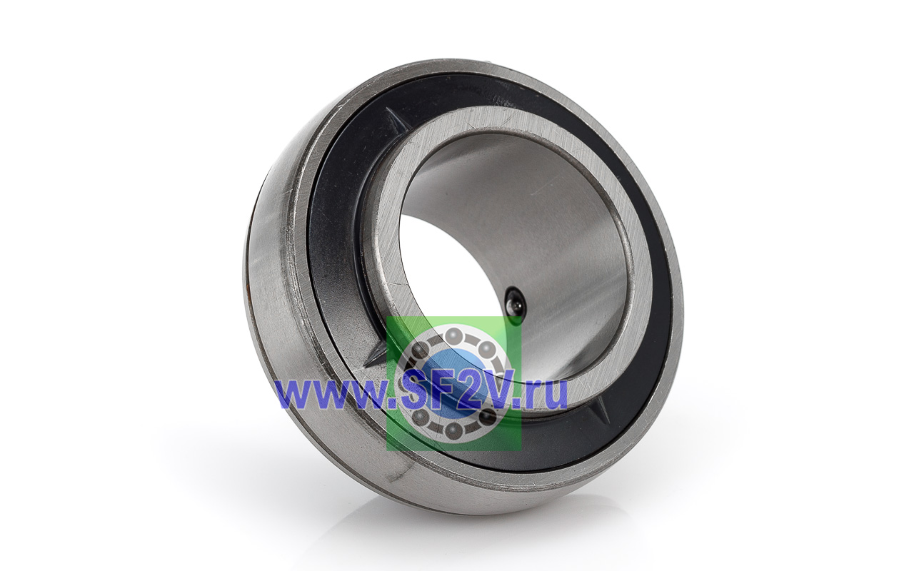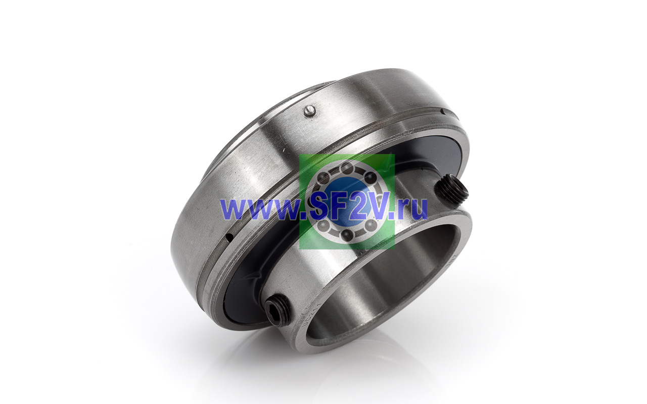 Шариковый подшипник, корпусной, закрытый с 2-х сторон. Крепление на вал с помощью затяжных болтов на внутреннем кольце. Подшипник типа UC – это корпусный подшипник, который используется для установки в корпусные подшипниковые узлы всех типов. Подшипник имеет сферическую наружную обойму, а корпус - сферическое посадочное отверстие. Такая конструкция позволяет подшипнику слегка перемещаться в корпусе, за счет чего компенсируется перекос вала или неточность монтажа. Крепление подшипника на валу осуществляется при помощи стопорных винтов. Кроме того, у такого подшипника есть специальные отверстия для замены смазки. Подшипники типа UC применяются в основном в качестве опор коротких валов, а также для тех мест установки, где возможно лишь небольшое тепловое линейное расширение. Осевые зазоры подшипника компенсируют небольшие удлинения вала. Подшипники типа UC применяются при нормальных нагрузках, низких или средних скоростях вращения.