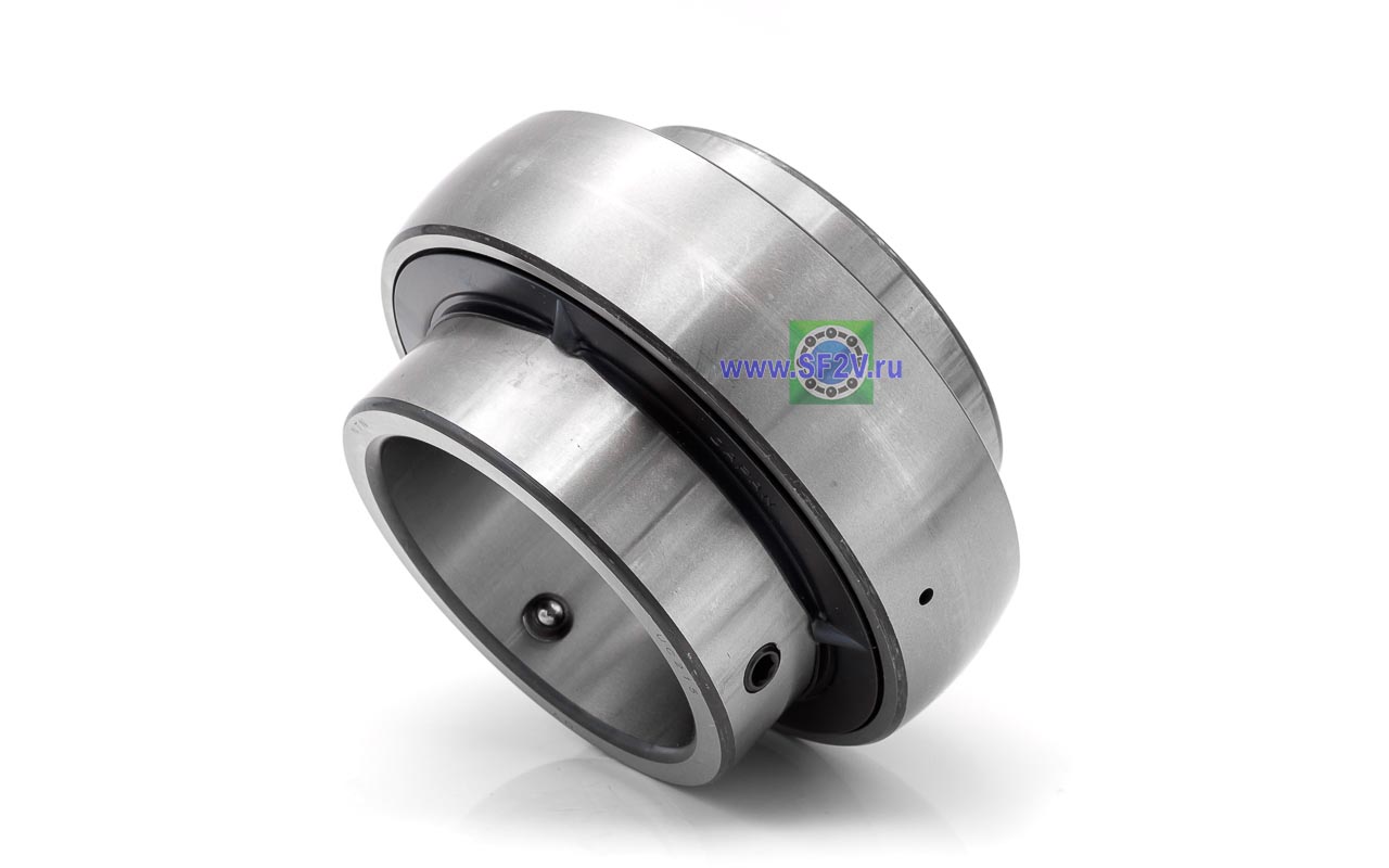 Шариковый подшипник, корпусной, закрытый с 2-х сторон. Крепление на вал с помощью затяжных болтов на внутреннем кольце. Подшипник типа UC – это корпусный подшипник, который используется для установки в корпусные подшипниковые узлы всех типов. Подшипник имеет сферическую наружную обойму, а корпус - сферическое посадочное отверстие. Такая конструкция позволяет подшипнику слегка перемещаться в корпусе, за счет чего компенсируется перекос вала или неточность монтажа. Крепление подшипника на валу осуществляется при помощи стопорных винтов. Кроме того, у такого подшипника есть специальные отверстия для замены смазки. Подшипники типа UC применяются в основном в качестве опор коротких валов, а также для тех мест установки, где возможно лишь небольшое тепловое линейное расширение. Осевые зазоры подшипника компенсируют небольшие удлинения вала. Подшипники типа UC применяются при нормальных нагрузках, низких или средних скоростях вращения.