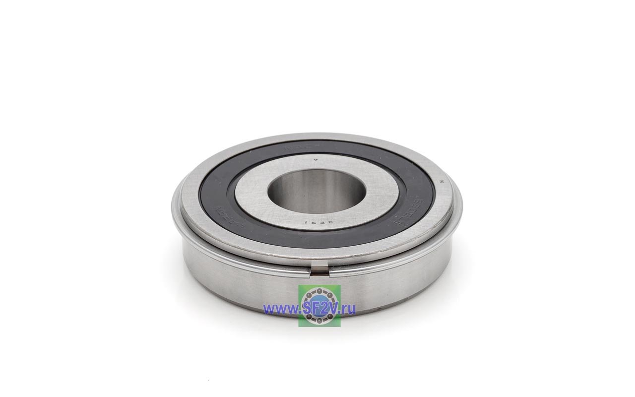 Радиальный шарикоподшипник с проточкой и стопорным кольцом на внешнем кольце. Стопорное кольцо служит для осевой фиксации подшипника, значительно упрощает монтаж, демонтаж, механическую обработку отверстий в корпусе и вала.