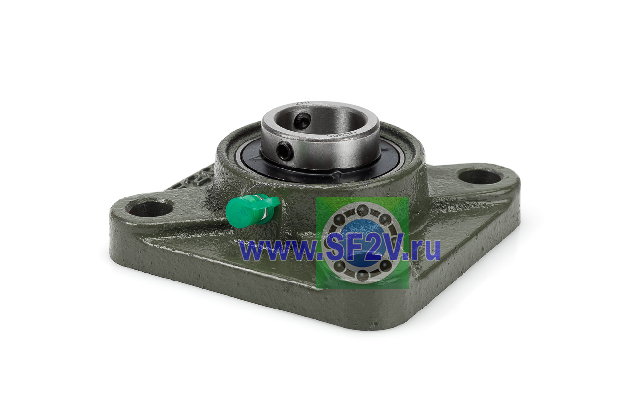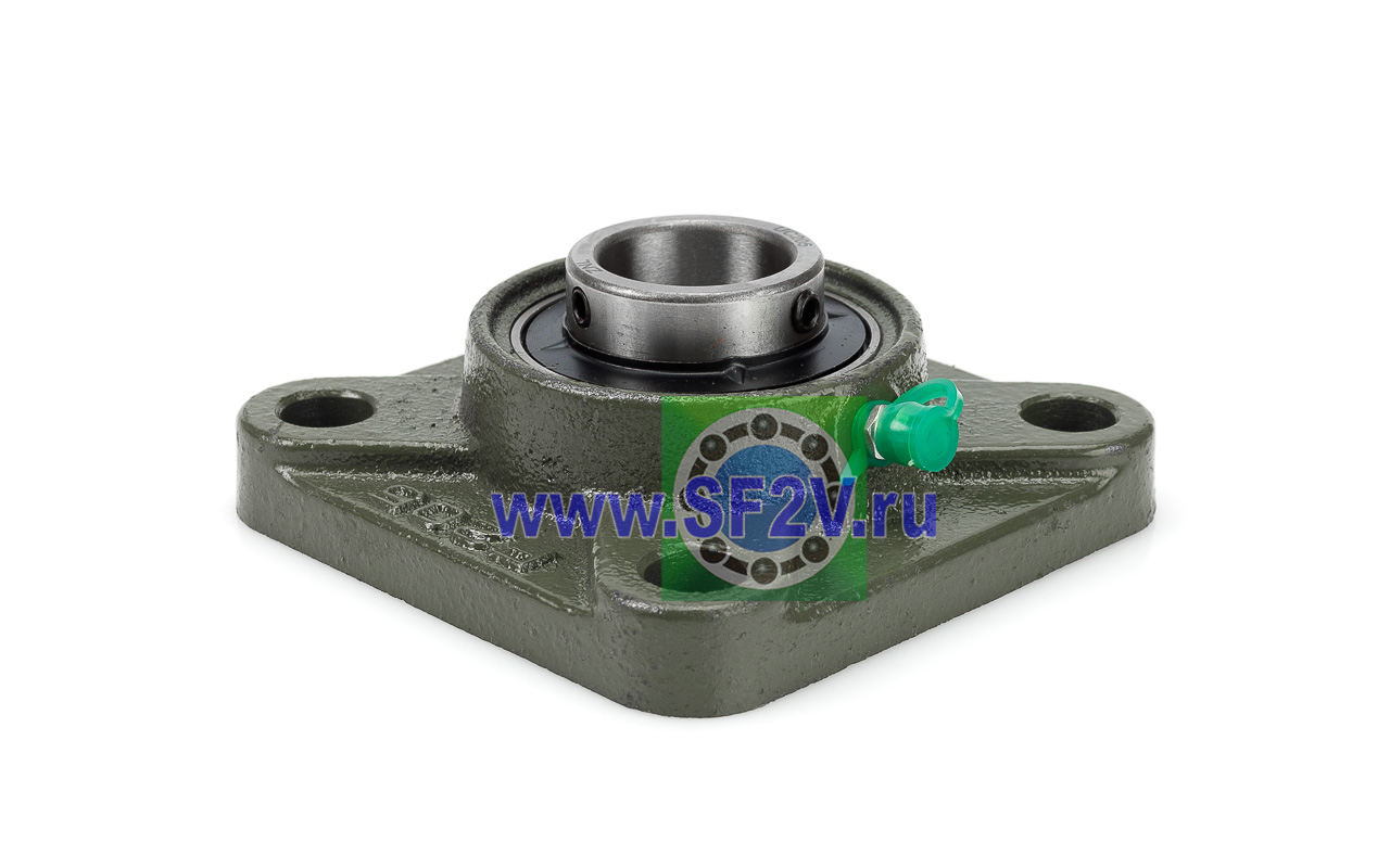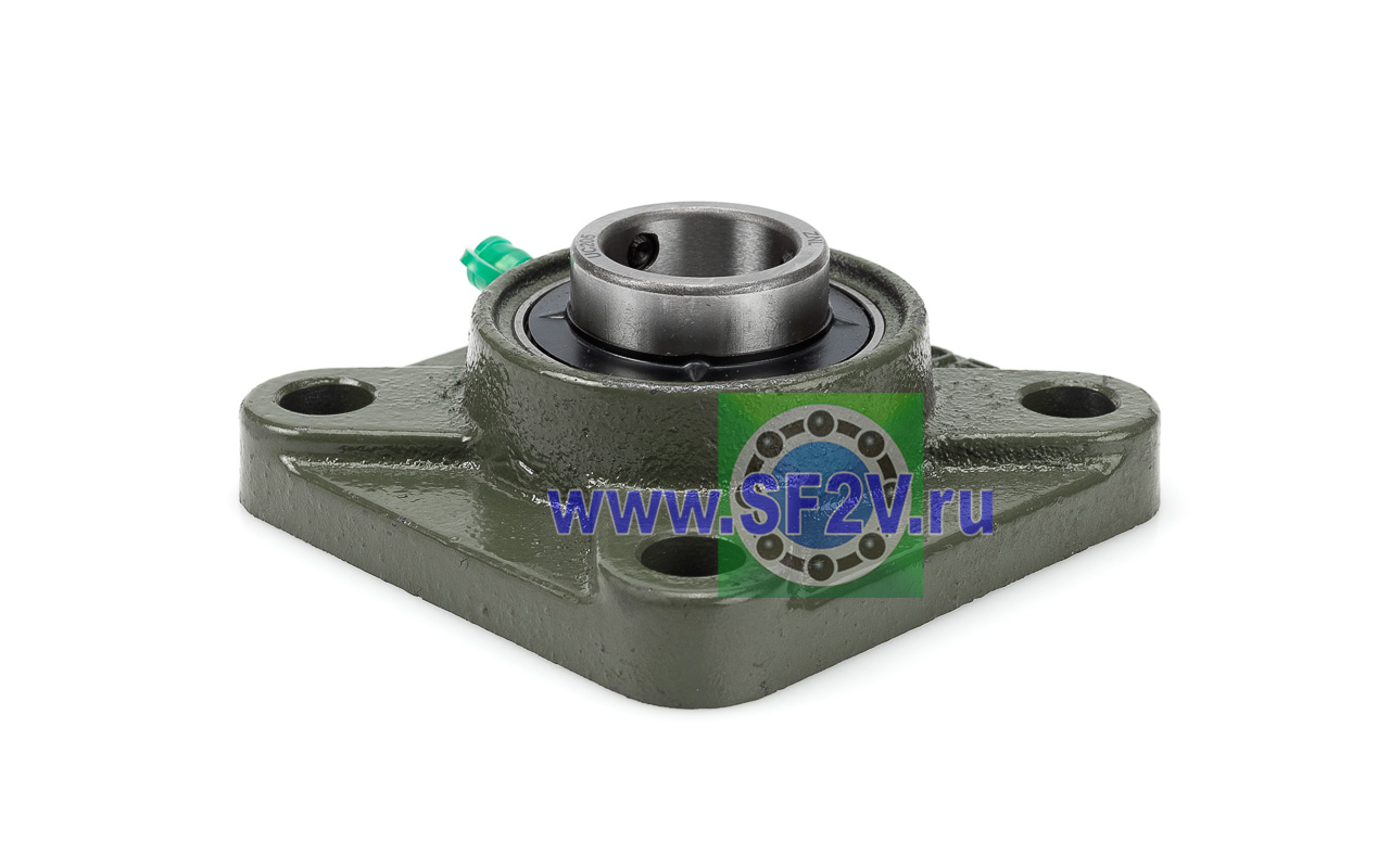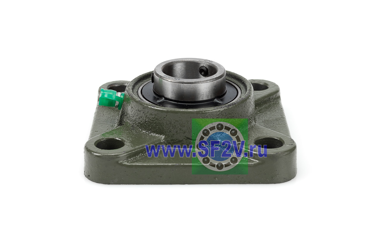 UCF - Подшипник с корпусом в сборе. Подшипник типа UC и подшипниковый корпус типа F - не разъемный, стационарный, фланец квадратного сечения, с четырьмя отверстиями для крепежных болтов, выполненный из литого чугуна, снабжен ниппелем для проведения сервисных работ по замене смазки.
