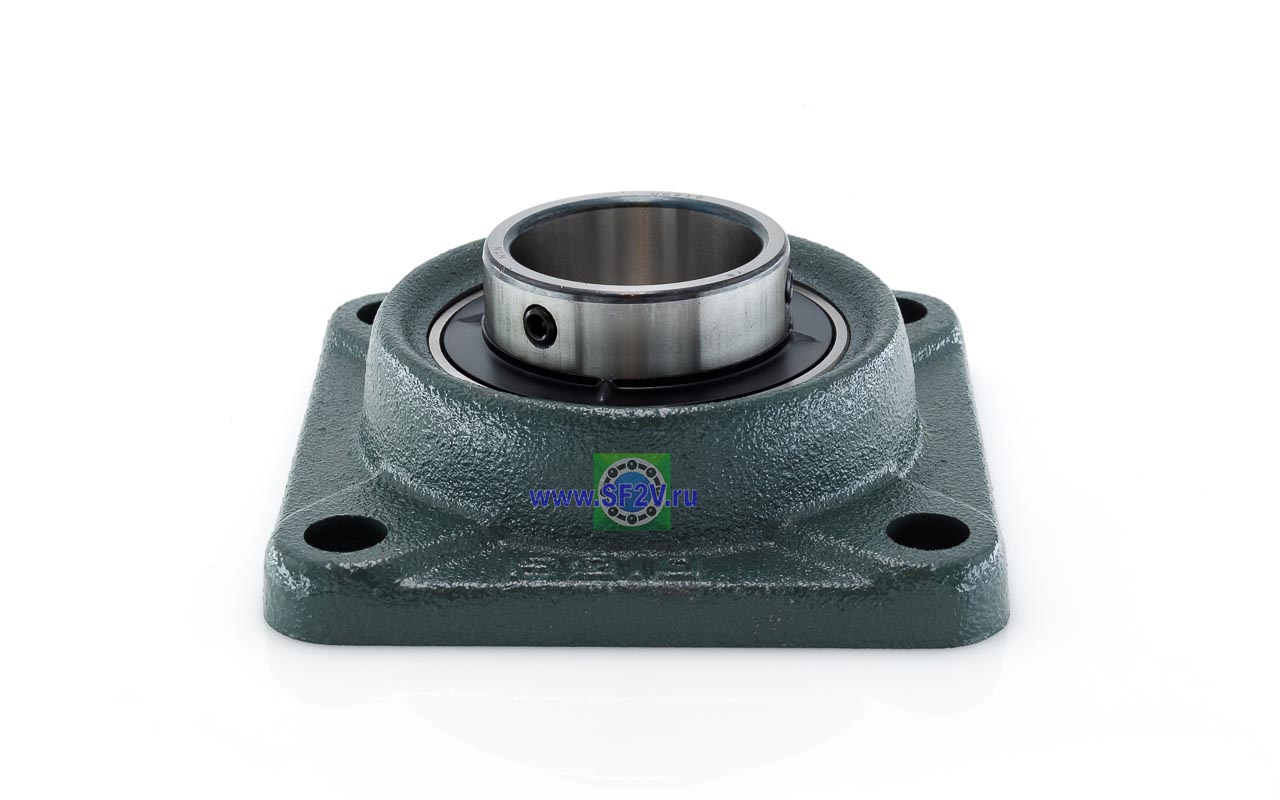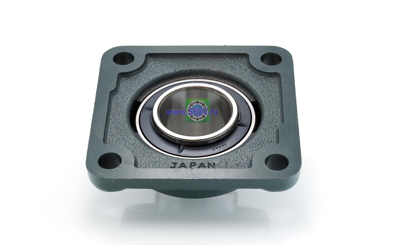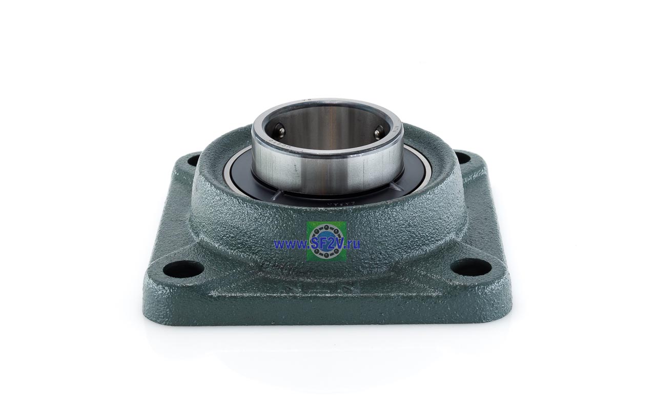 UCF - Подшипник с корпусом в сборе. Подшипник типа UC и подшипниковый корпус типа F - не разъемный, стационарный, фланец квадратного сечения, с четырьмя отверстиями для крепежных болтов, выполненный из литого чугуна, снабжен ниппелем для проведения сервисных работ по замене смазки.