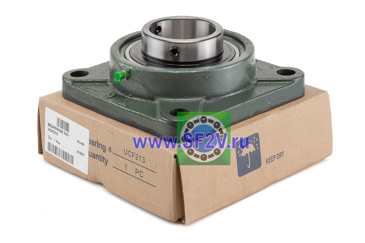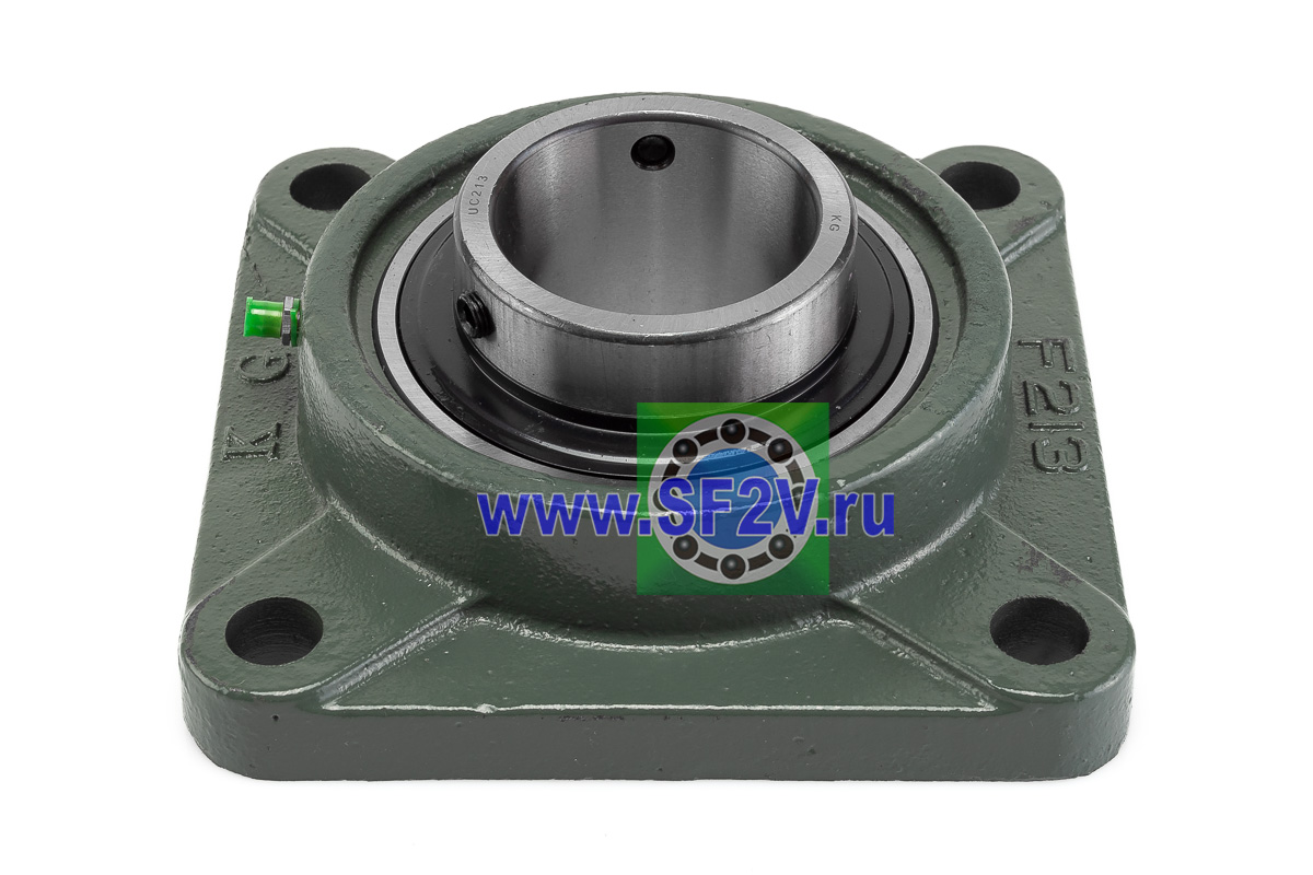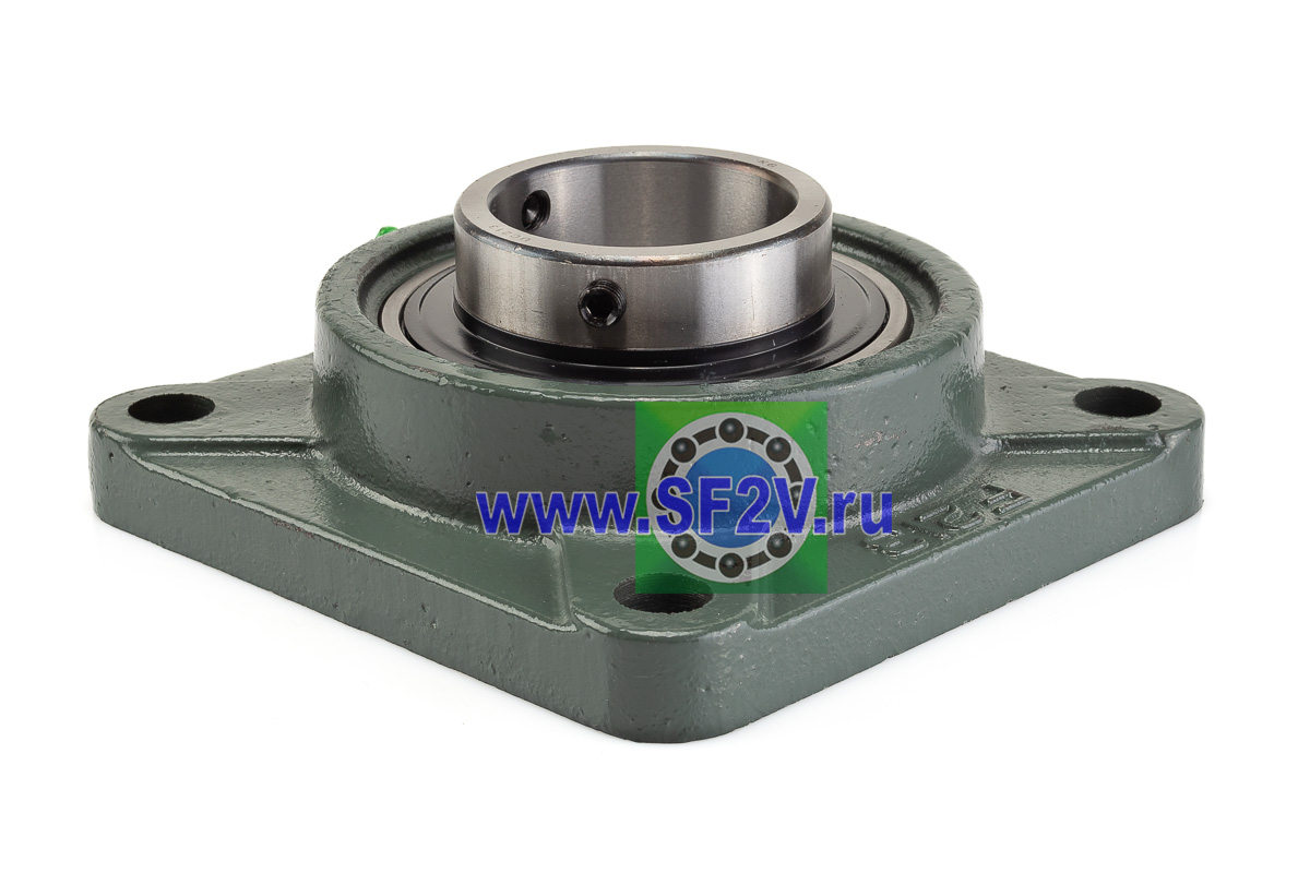 UCF - Подшипник с корпусом в сборе. Подшипник типа UC и подшипниковый корпус типа F - не разъемный, стационарный, фланец квадратного сечения, с четырьмя отверстиями для крепежных болтов, выполненный из литого чугуна, снабжен ниппелем для проведения сервисных работ по замене смазки.