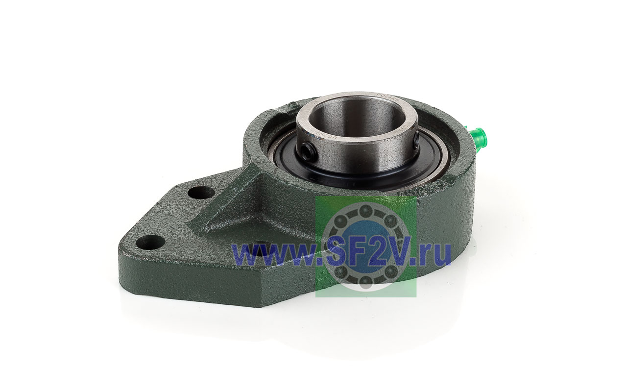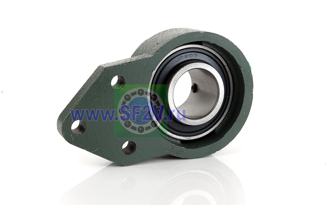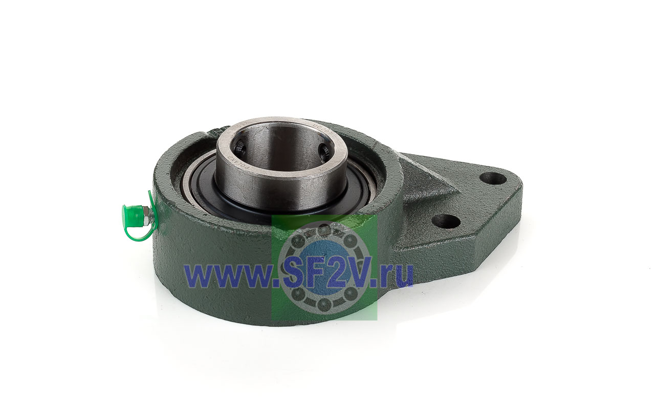 UCFB - Подшипник с корпусом в сборе. Подшипник типа UC и подшипниковый корпус типа FB - не разъемный, стационарный, фланец с тремя отверстиями для крепежных болтов, выполненный из литого чугуна, снабжен ниппелем для проведения сервисных работ по замене смазки.